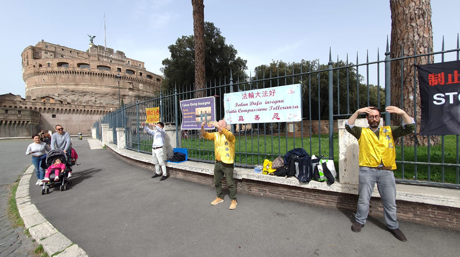 三月三十日星期六,罗马(Roma)法轮功学员在圣天使城堡(Castel Sant’Angelo)附近举办信息日活动。活动地点位于圣天使城堡和梵蒂冈之间,是行人必经之地。来自世界各地的游客络绎不绝,学员有的演示法轮功的功法,有的给他们介绍法轮功及其真相。