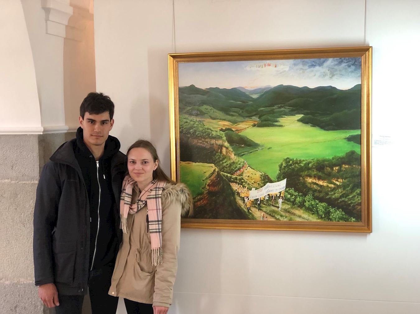 加布里埃尔·卡梅拉(Gabriel Kamerla)在参观美展时告诉学员,他还没有听说过法轮大法,但一直在寻找能指引自己的路。聆听学员对画作的讲解后,他也买了一本《转法轮》,并表示愿意再次参观美展。