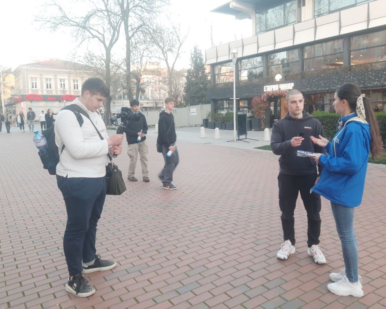 ![]() 图1:当地社交媒体频道采访来自瓦尔纳的法轮功学员尼科尔,询问本次活动的目的。 |