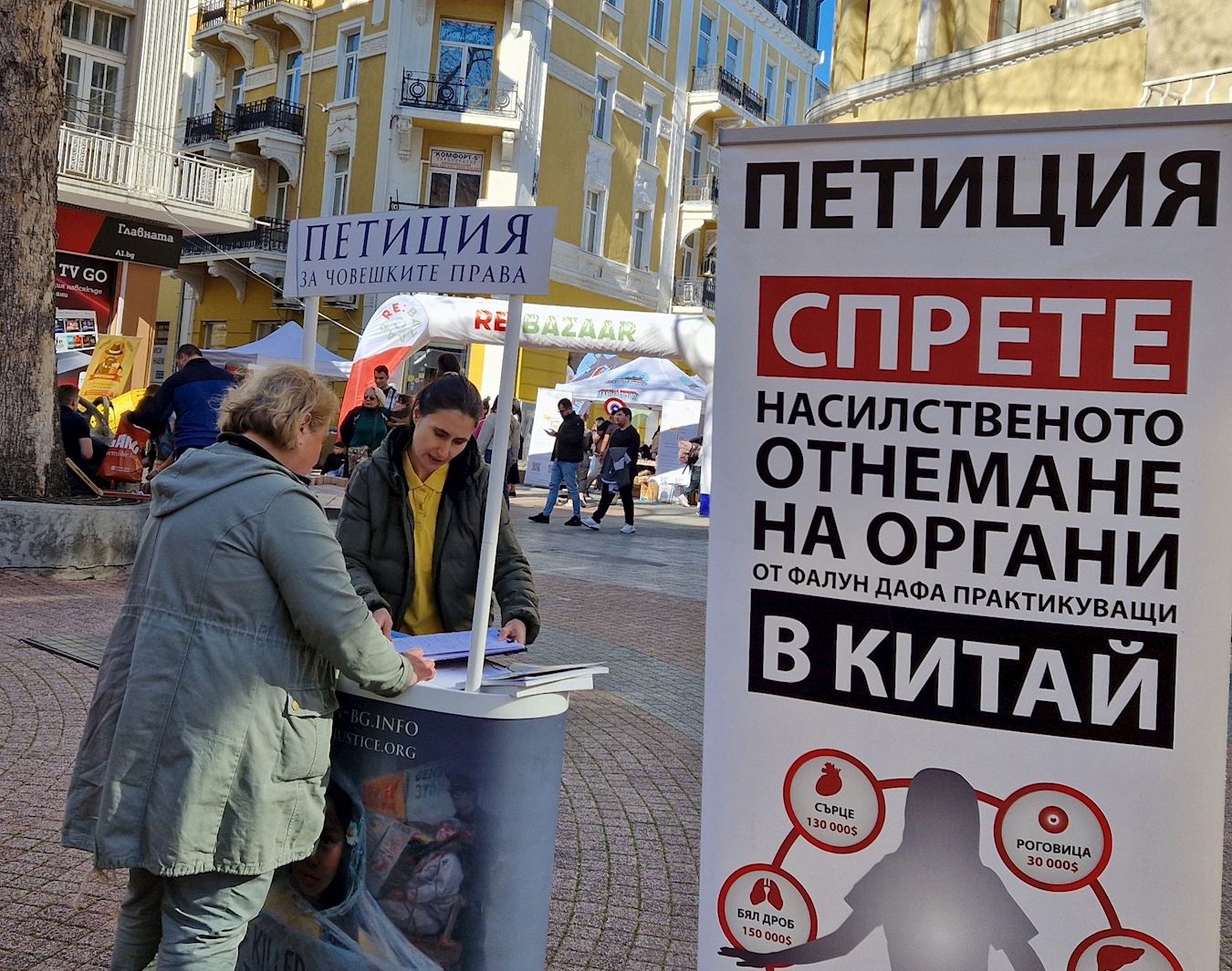 为了帮助人们了解法轮功真相,学员们还准备了一份请愿书,支持“医生反对活摘器官”组织(DAFOH)提出的倡议。DAFOH的请愿书呼吁保加利亚政府确保保加利亚国家、公民和组织不参与对法轮功学员的迫害和活摘器官的行为。