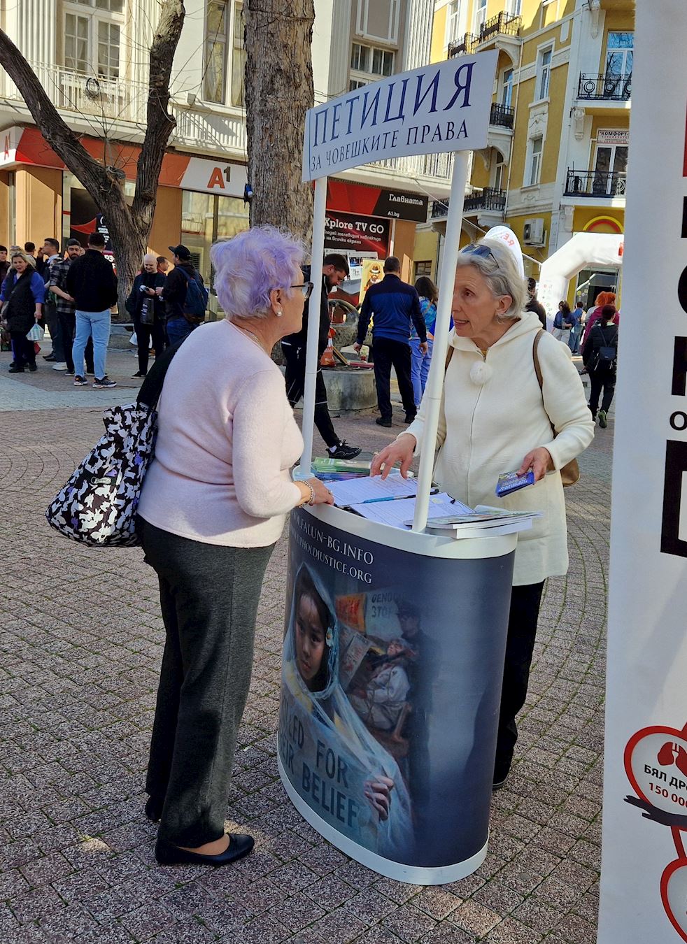 两人对传单上关于修炼功法的信息很感兴趣,在签署了请愿书后,她们询问普罗夫迪夫市的学员在哪里炼功,她们想来试试。