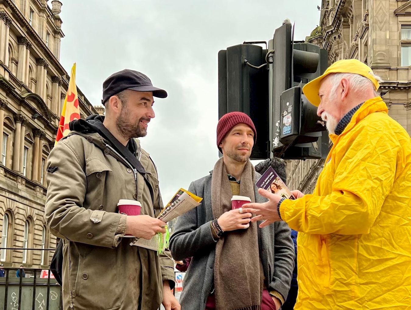 罗文(Rowan)是一位催眠治疗师,对学员展示的功法非常感兴趣,他的朋友来自阿伯丁,正在学习神学,也被功法吸引。在学员向他讲解了法轮功真相后,他们毫不犹豫地签名支持反迫害。