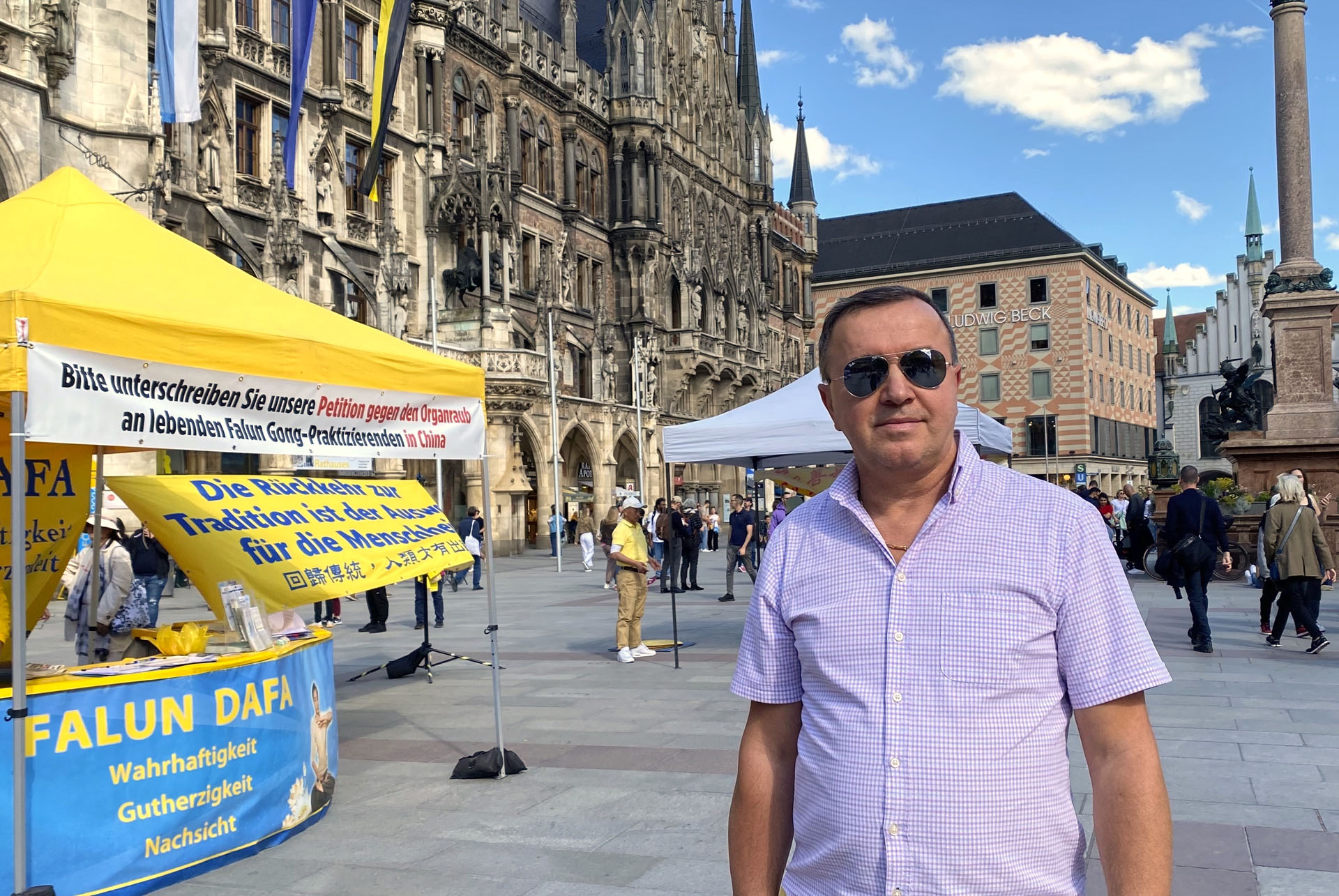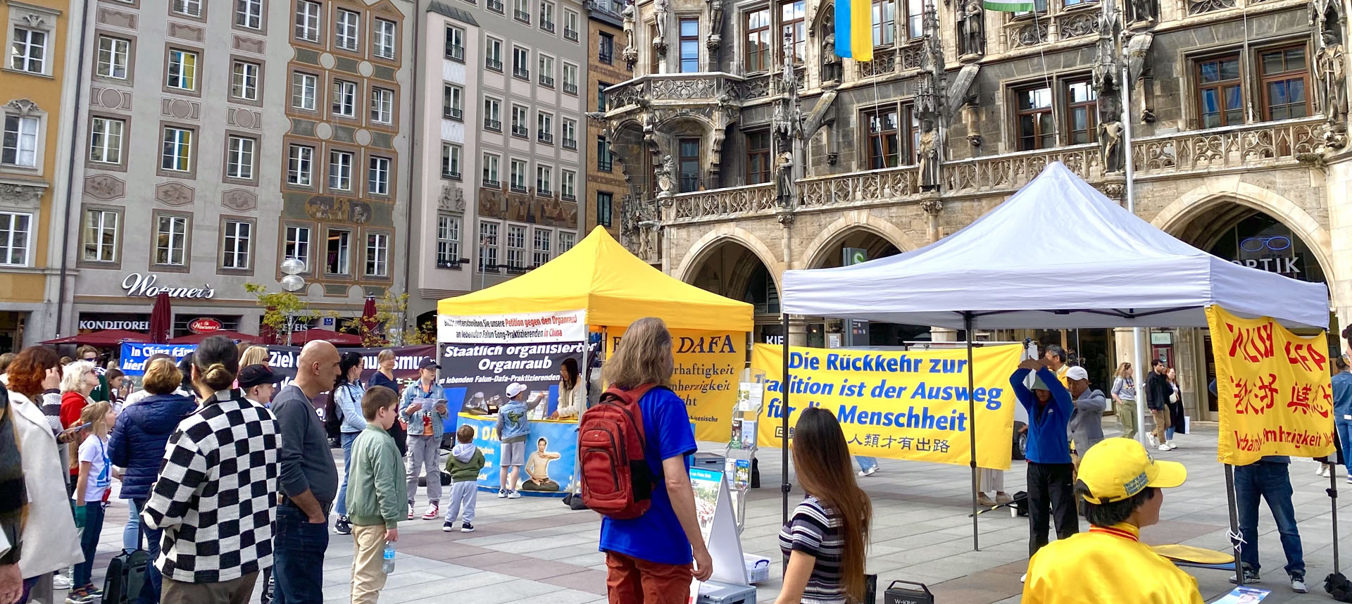 ![]() 图1:二零二四年四月二十四日,慕尼黑法轮功学员在市中心市政府楼前的玛利亚广场举办活动,展示法轮功的美好,揭露中共迫害法轮功的罪恶。 |