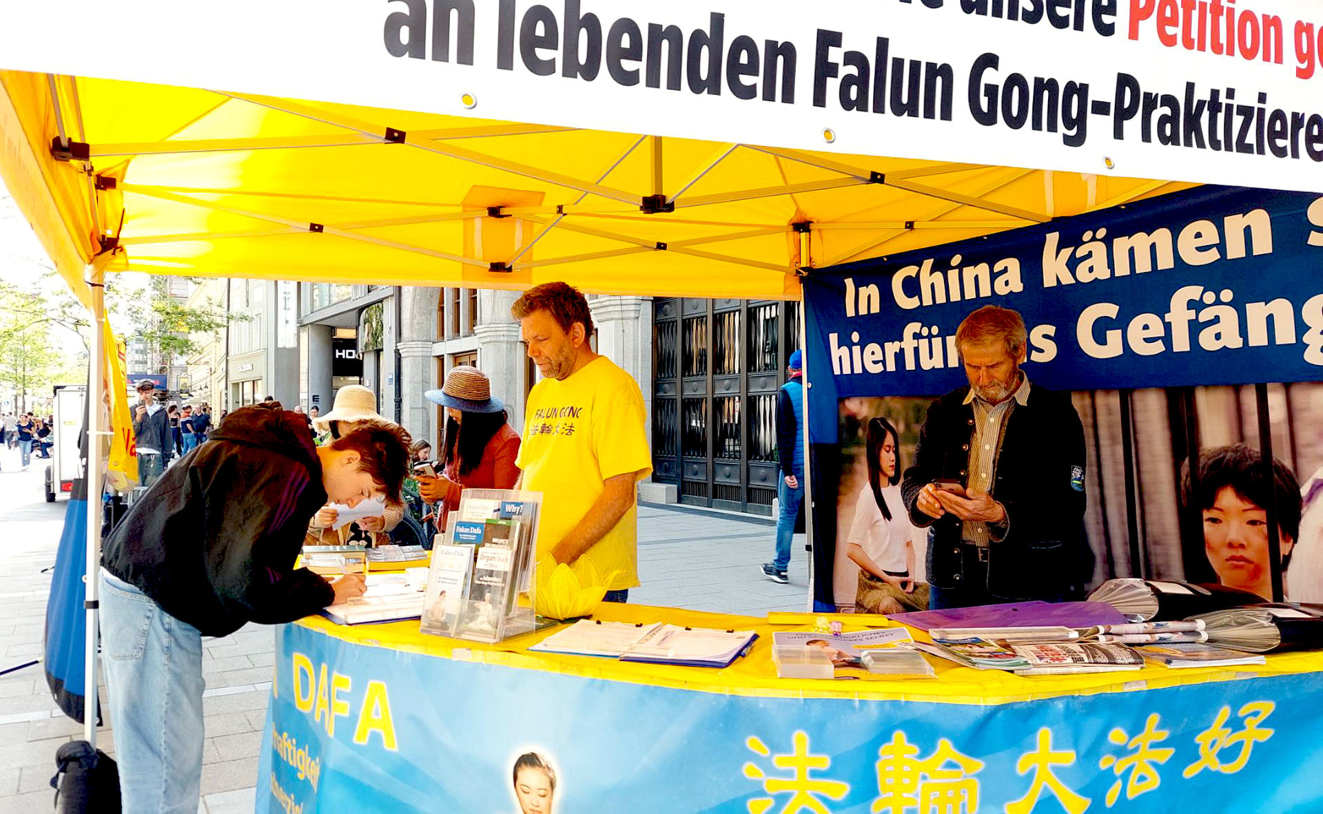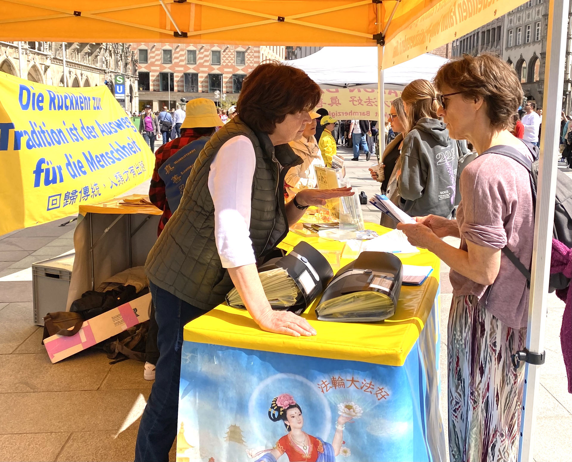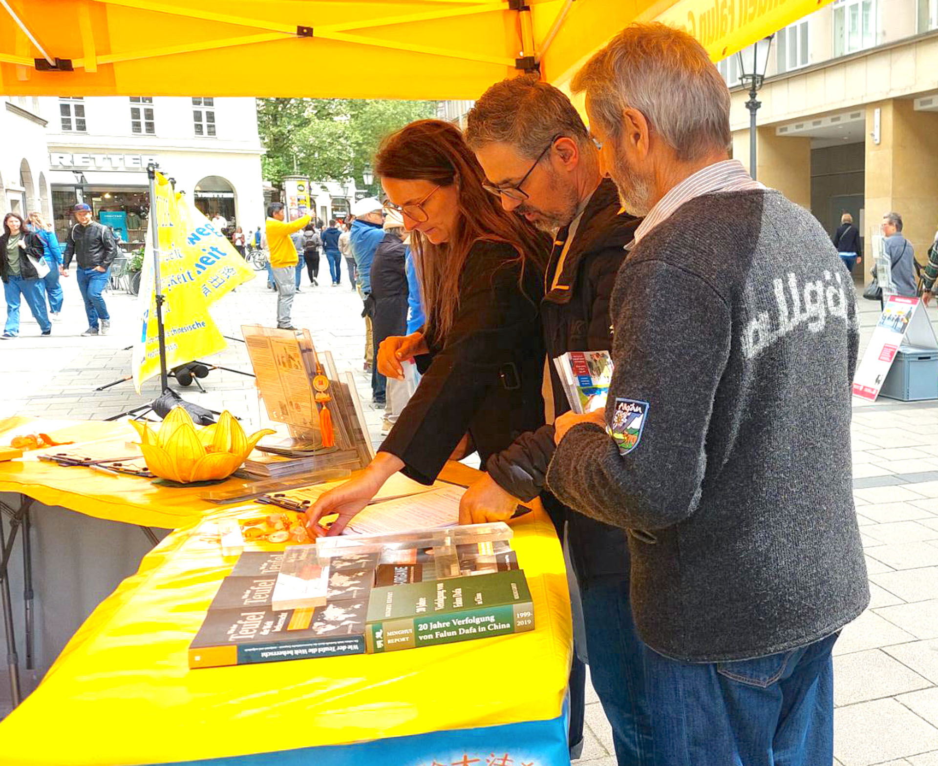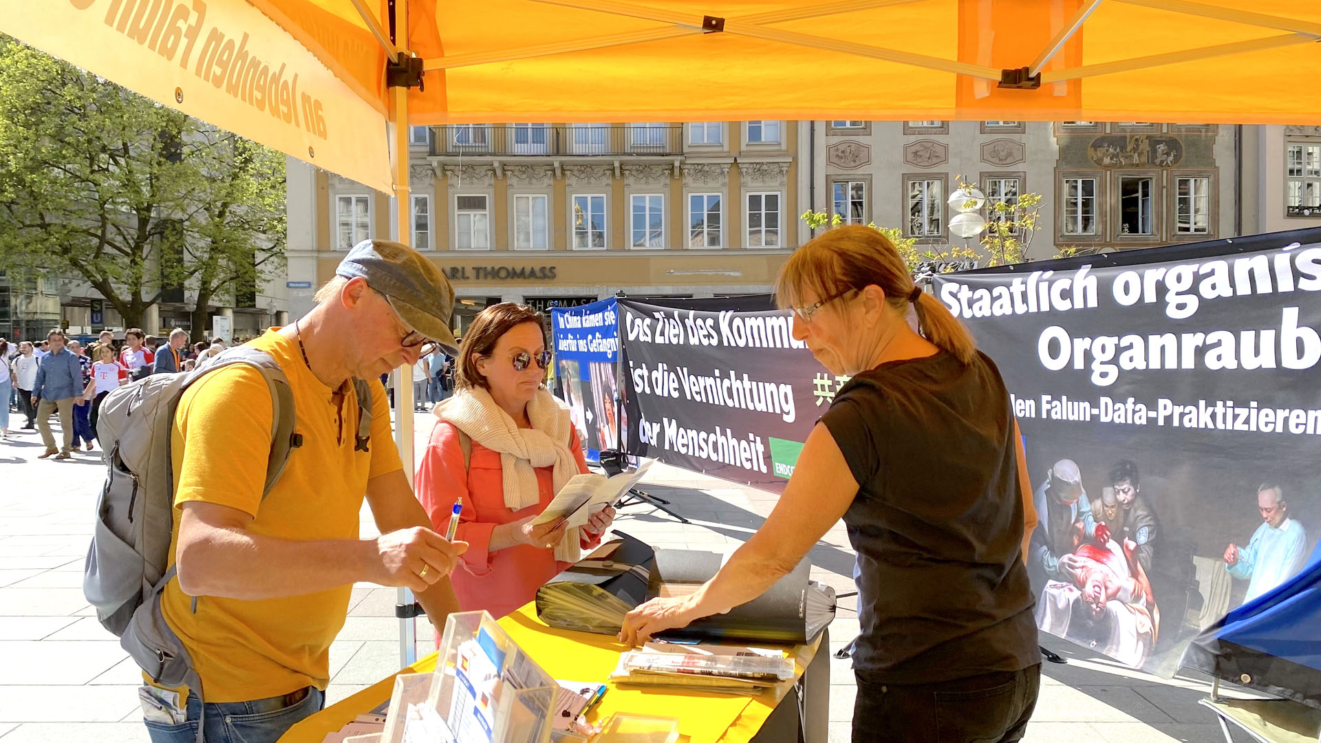 ![]() 图4~5:二零二四年四月二十四日,民众在慕尼黑市中心玛利亚广场签名制止中共迫害。 |