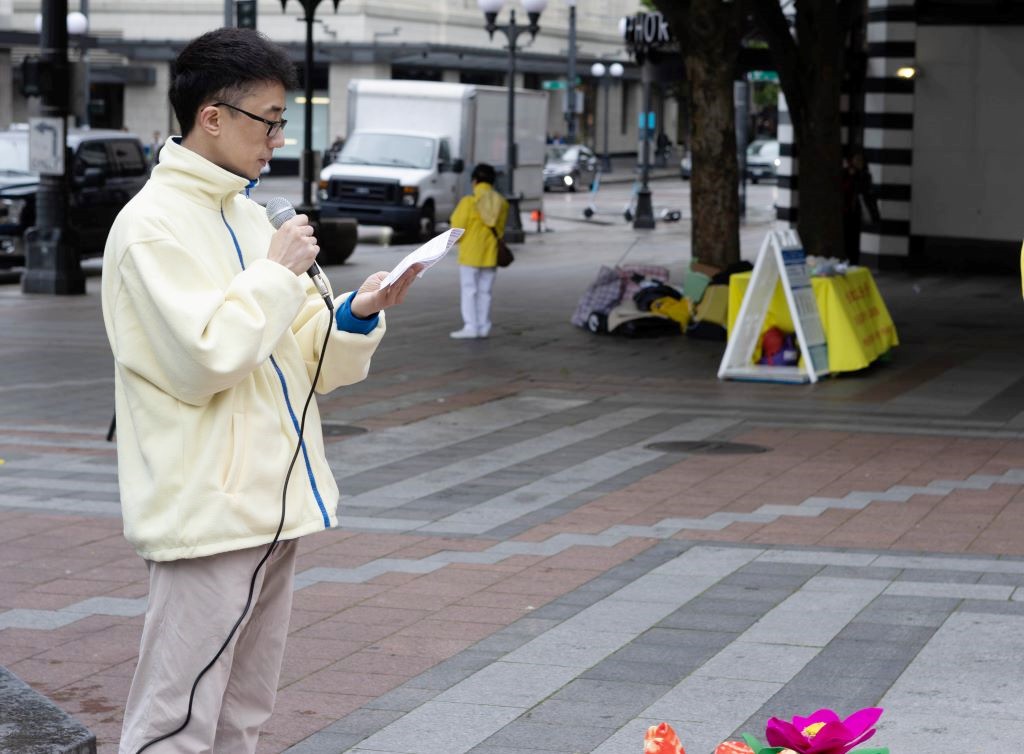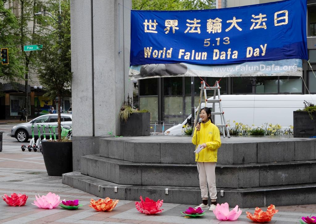 在随后的集会上,几位法轮功学员发言,向西雅图民众介绍了法轮功的弘传、法轮大法日对世界的意义。