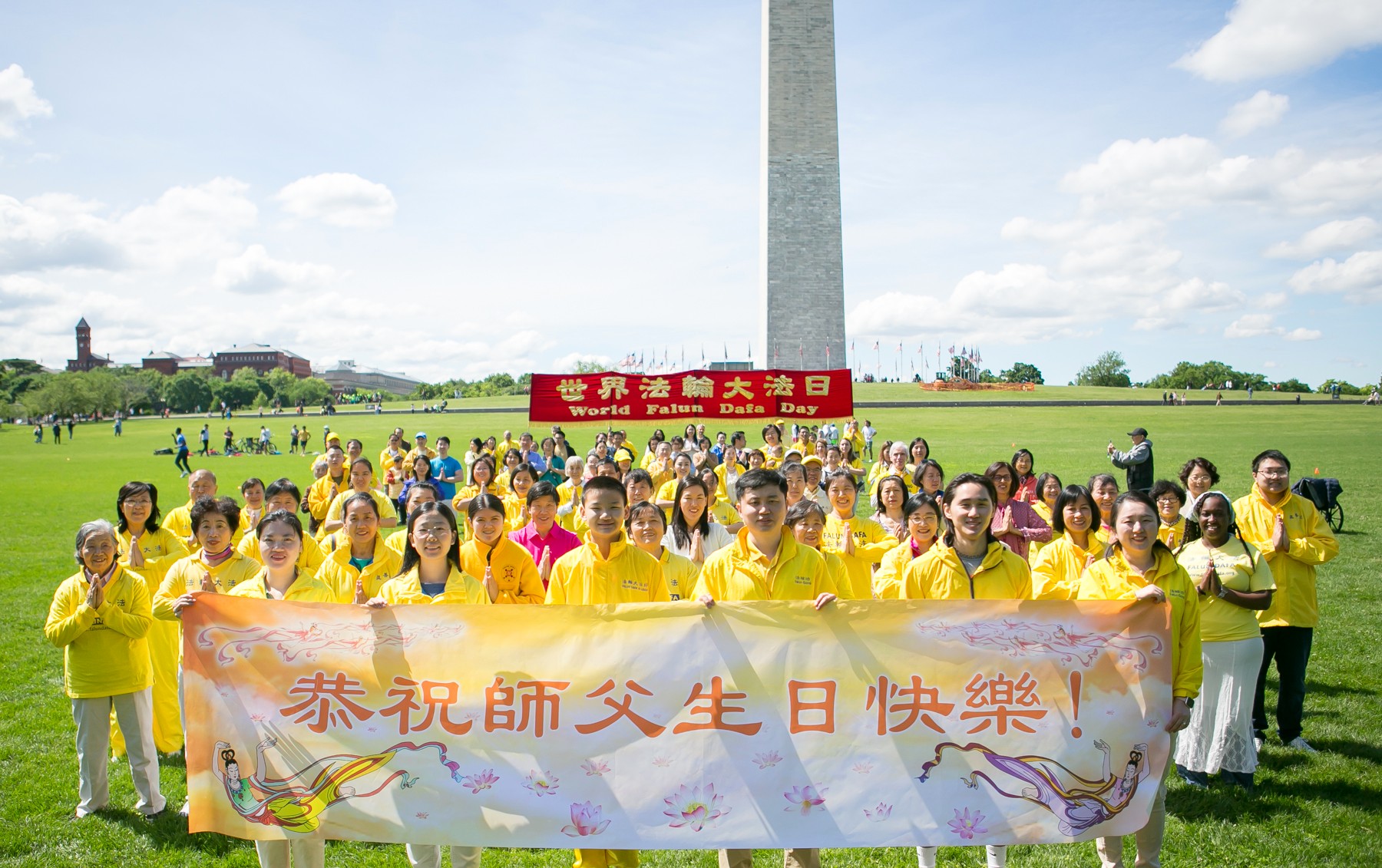 ![]() 图1:二零二四年五月十一日,美国首都华盛顿的部分法轮功学员在美国国家广场庆祝“世界法轮大法日”,恭祝师父生日快乐。 |