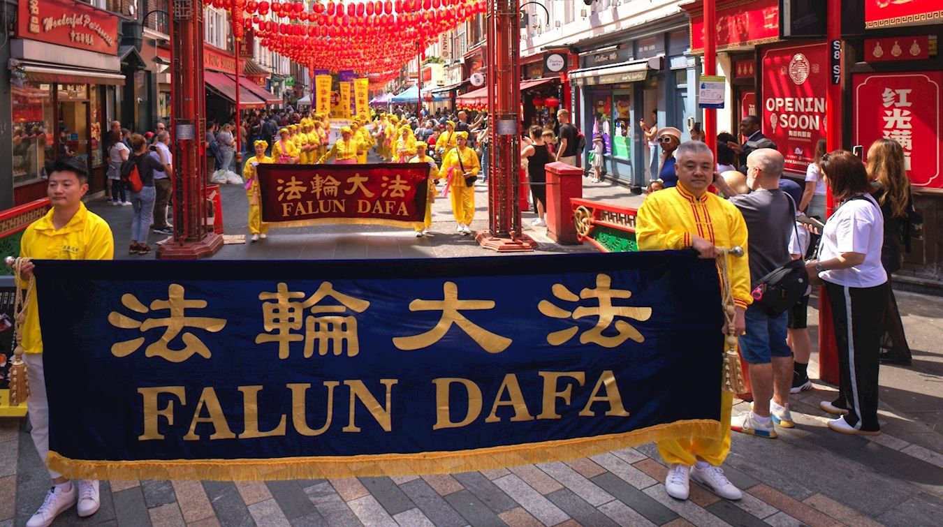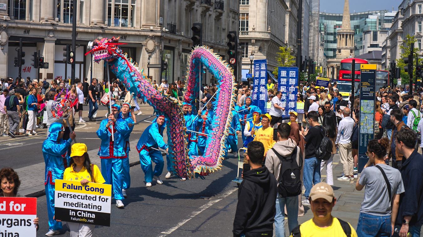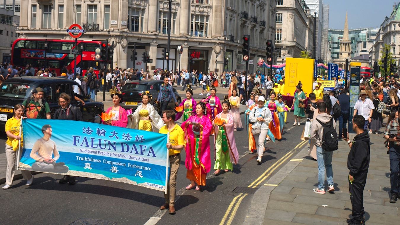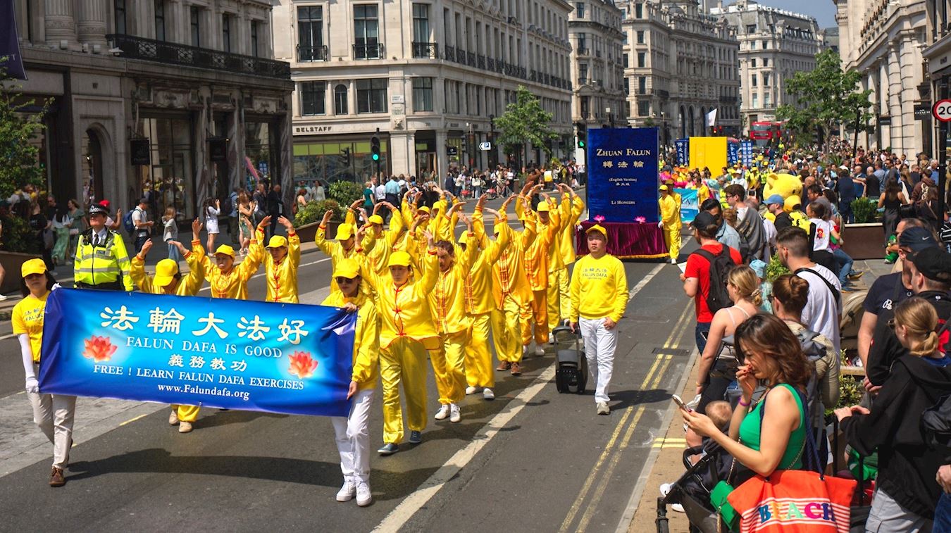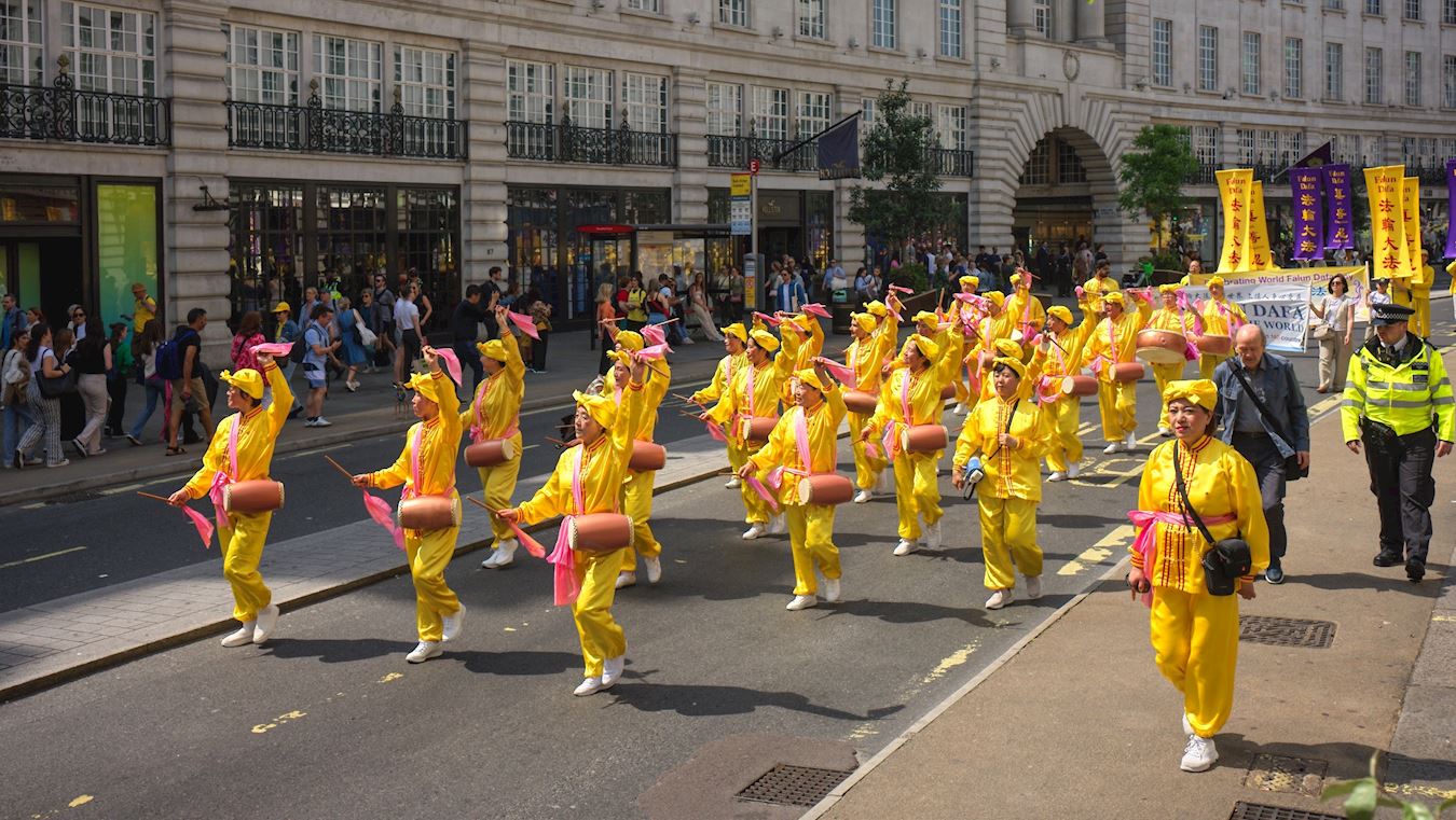 游行队伍包括腰鼓队、仙女队、舞龙队、功法展示、三退保平安等多个方阵组成,从中国大使馆门前出发,途经伦敦市中心地段的最繁华商业干道和唐人街,途中旌旗招展、锣鼓喧天,展示法轮大法的美好。