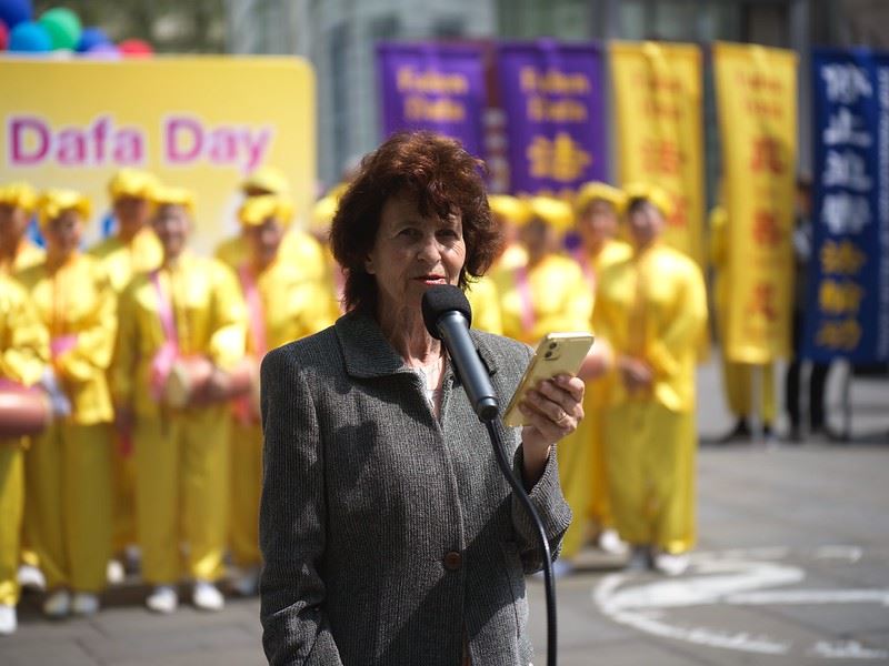 英国法轮大法佛学会代表罗斯玛丽(Rosemary)在发言中说:“世界法轮大法日的意义不仅仅在于修炼法门本身,而在全球修炼者的心中具有特殊的意义,并对整个人类具有深远的影响。法轮大法修炼者始终坚守真、善、忍的理念。他们的和平抗争证明了这一修炼法门所坚持的普世价值的力量。我们相信,将来有一天,人们会说:‘这是一个具有全球意义的日子;让我们都记住她。’”