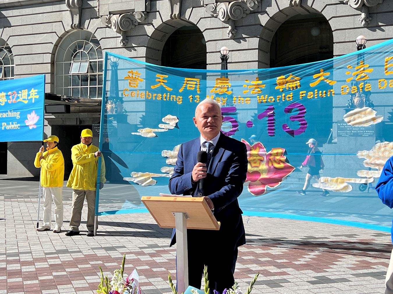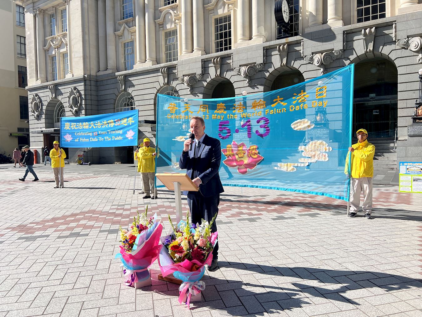 他说:“在奥克兰,每天上午,无论是在中共国驻奥克兰领馆前,还是在市中心皇后大道,处处都有大法弟子打坐炼功的场景,你们持之以恒,风雨无阻,这种精神令人震撼,也令我感动。”
