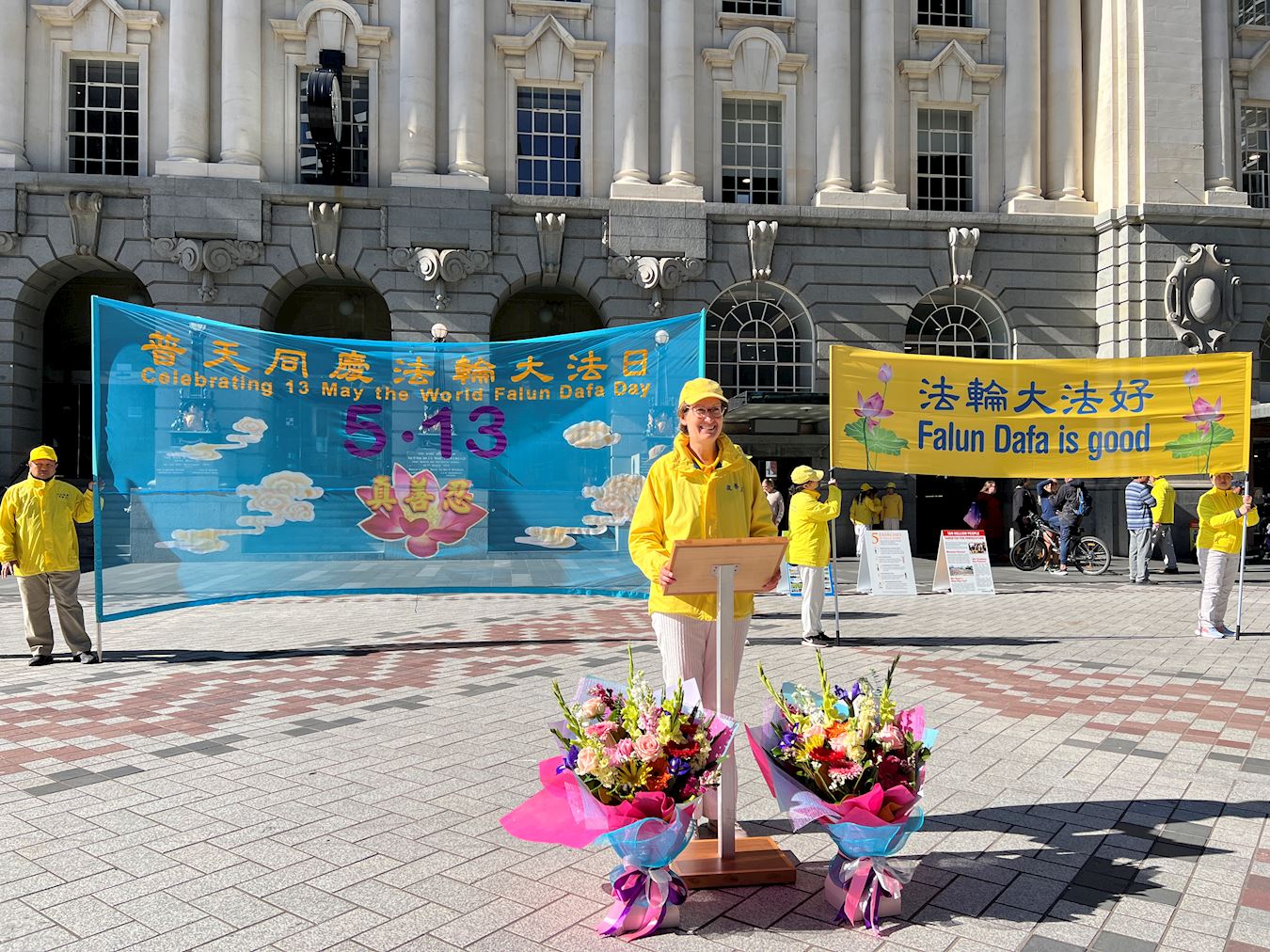集会上,法轮功学员分享了修炼法轮功后,疾病痊愈、身心受益的亲身经历,他们表达了对师尊的无限感恩。新西兰人权律师凯瑞·高尔(Kerry Gore)、华人篮球教练张洛奇(Rocky Zhang)、新西兰民主义工约翰逊(Johnson)到场支持,并发表演讲。