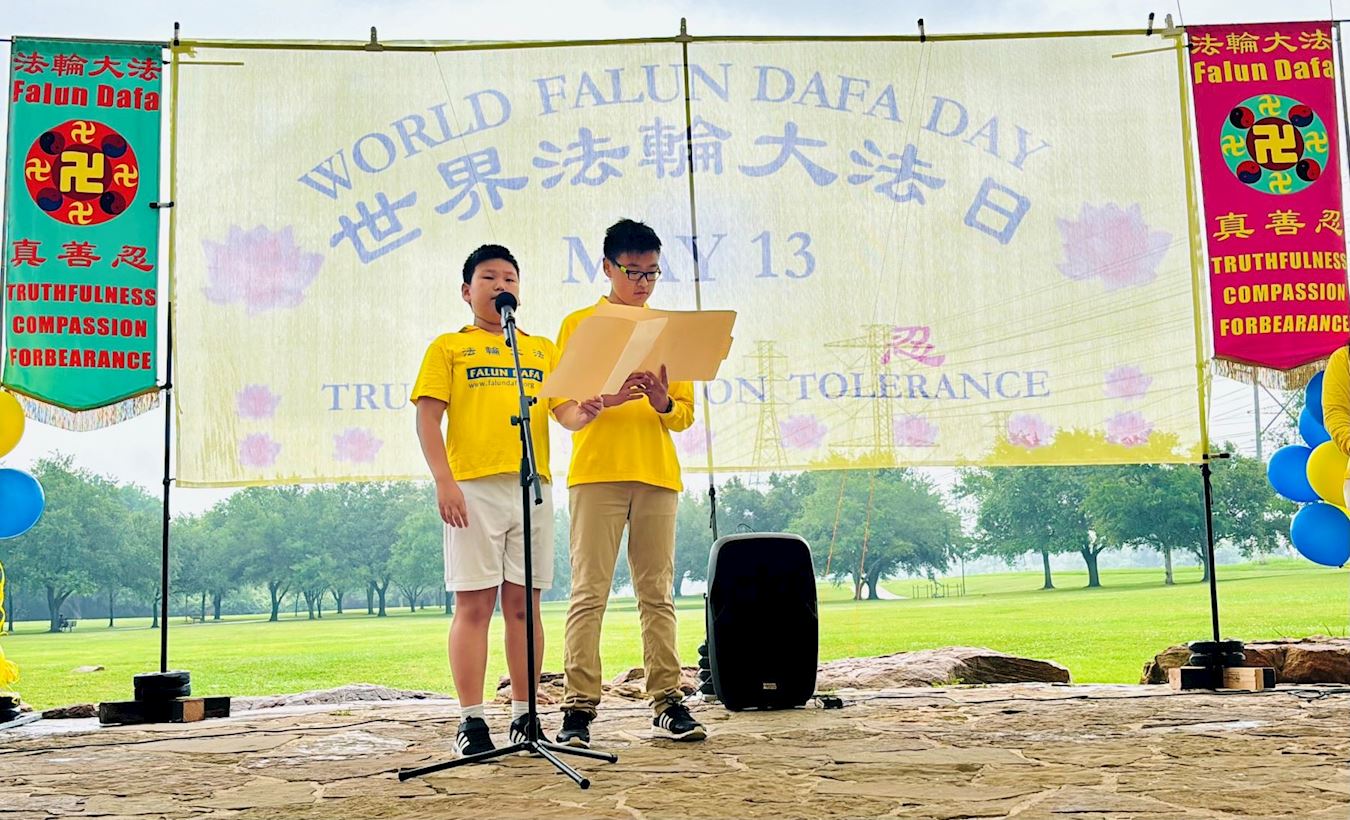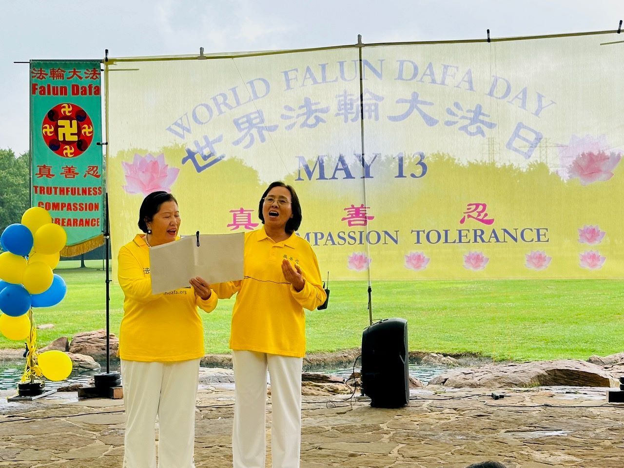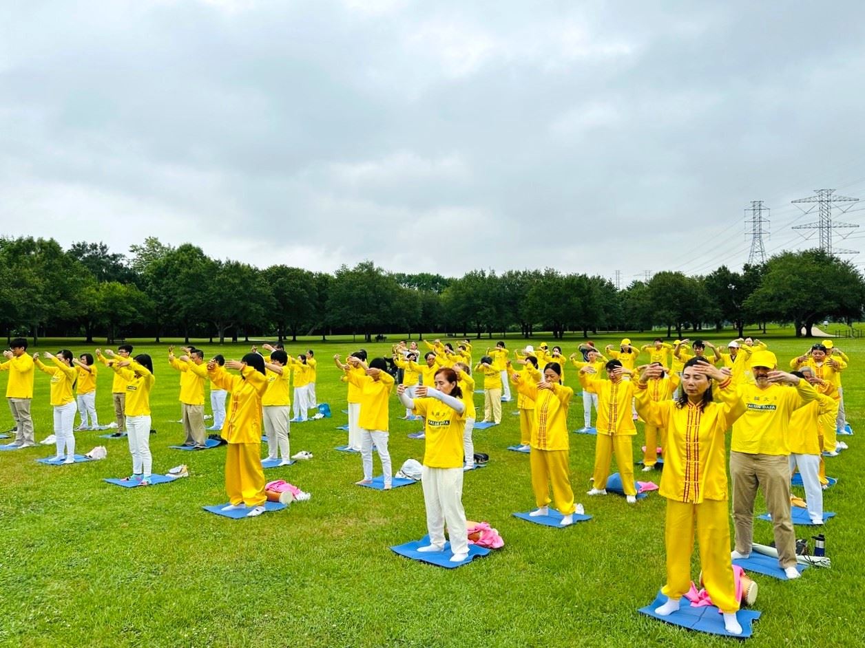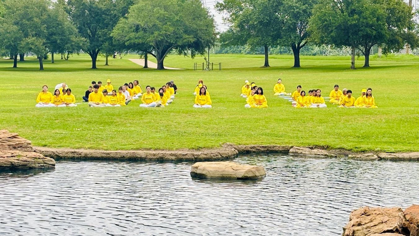 ![]() 图1~2:二零二四年五月十二日,休斯顿及部分来自奥斯汀、大学城以及新布朗费尔斯的法轮功学员在休斯顿西南区的蚌溪公园举行集体炼功。 |