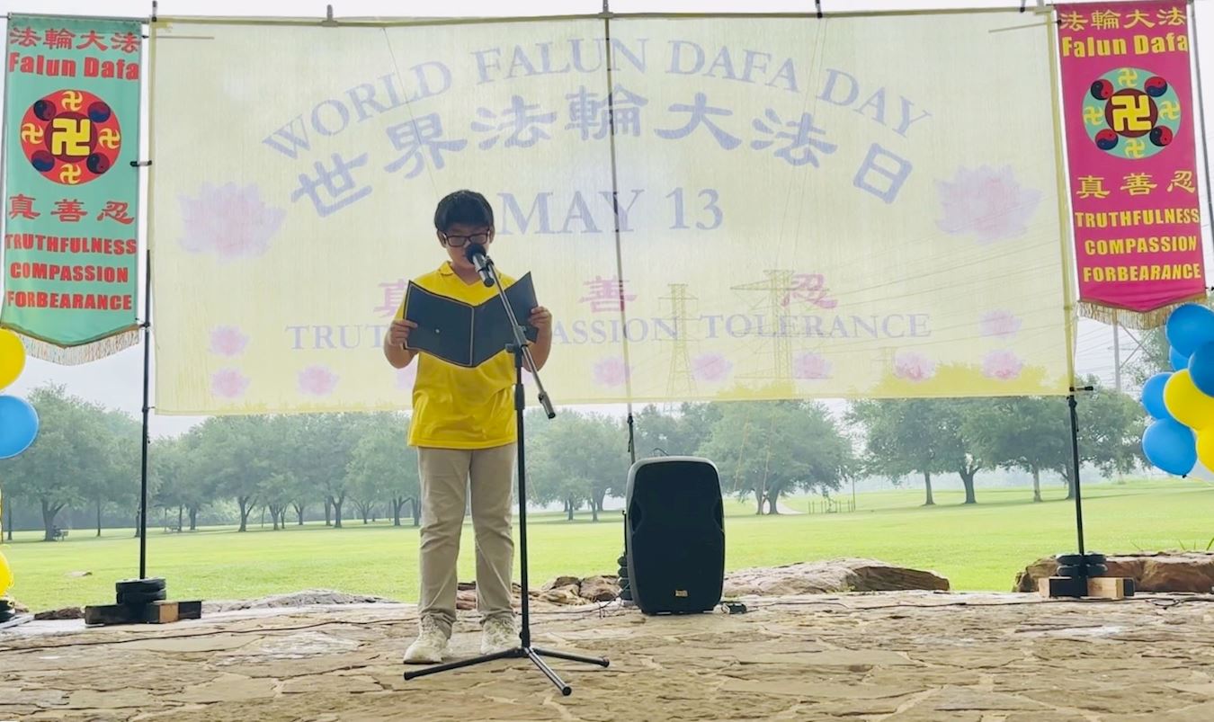 ![]() 图13:休斯顿法轮功学员齐聚休斯顿西南区的蚌溪公园,恭祝师尊生日快乐。 |
