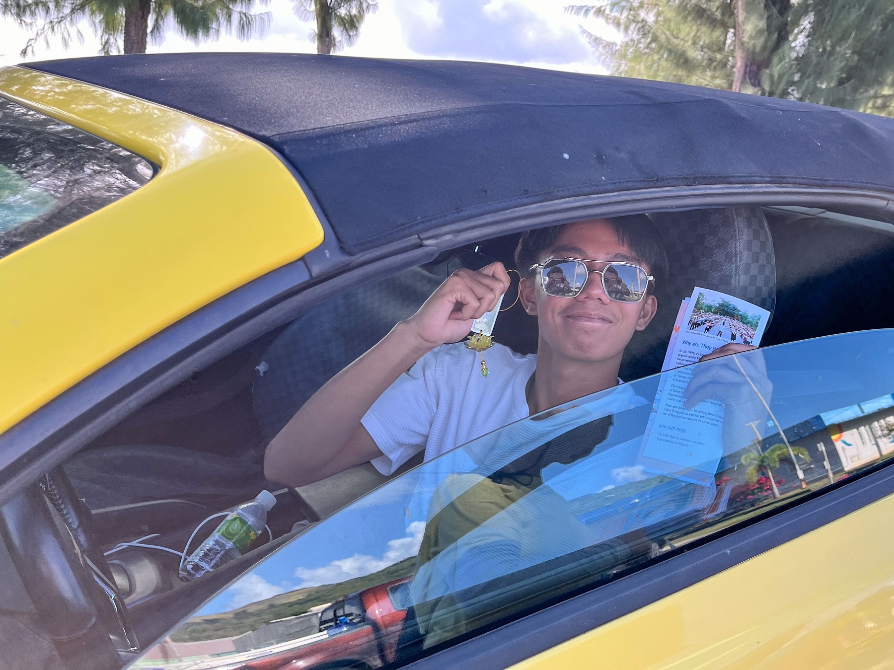 五月十二日下午及五月十三日上午,学员举行了环岛“庆祝5.13世界法轮大法日”车队游行,在当地警署和交通部门的协助下,由警车开道,从美国纪念公园出发,途经海滨路、基督教堂、机场、马里亚纳大学、泡泡海滩等重要路段,历时一个半小时左右,场面祥和,受到当地居民的关注和欢迎。