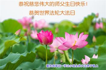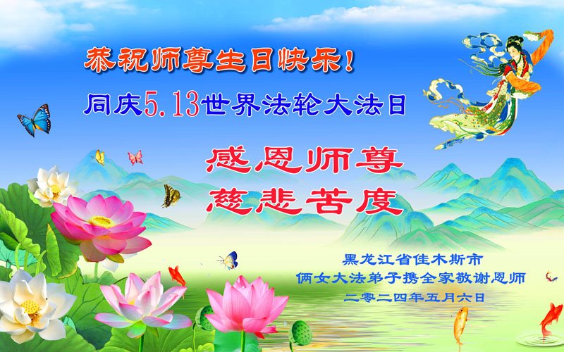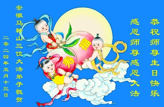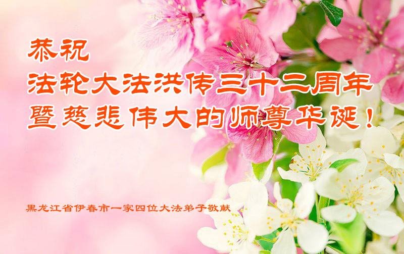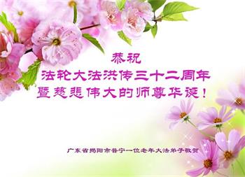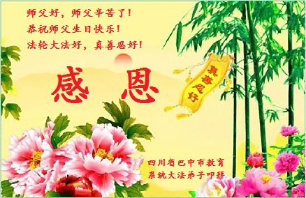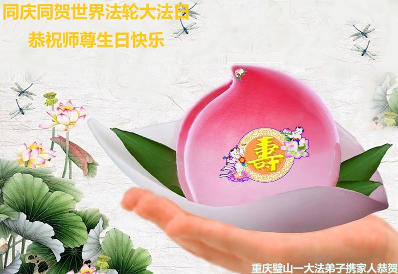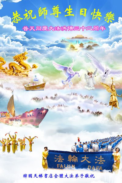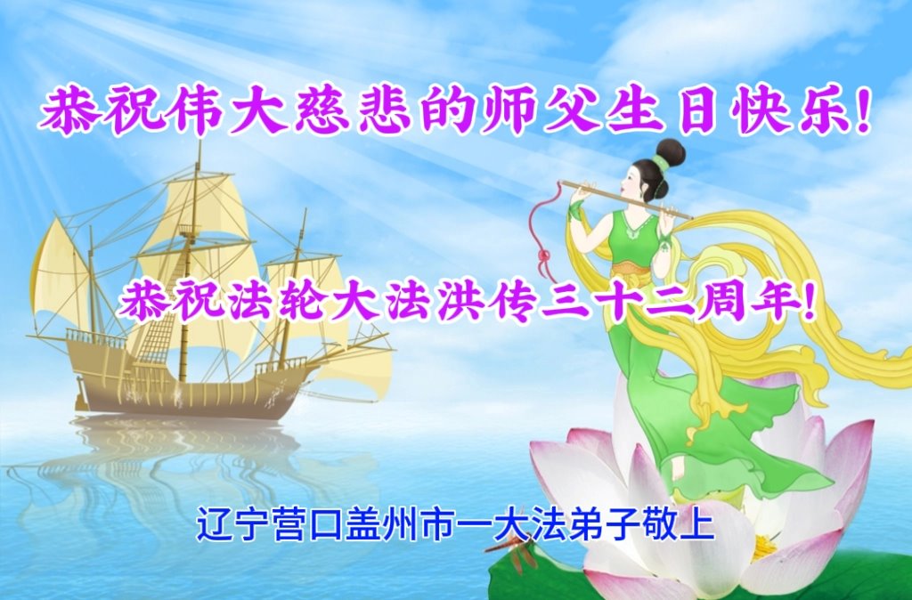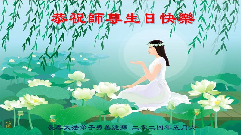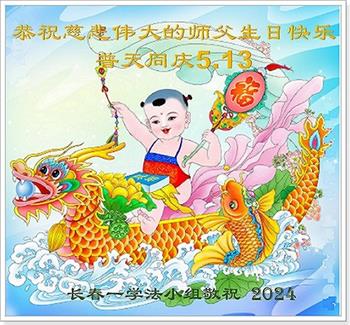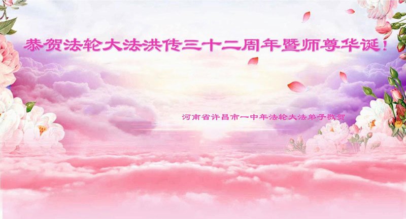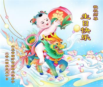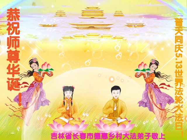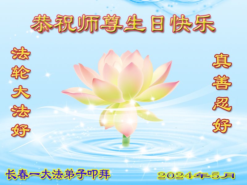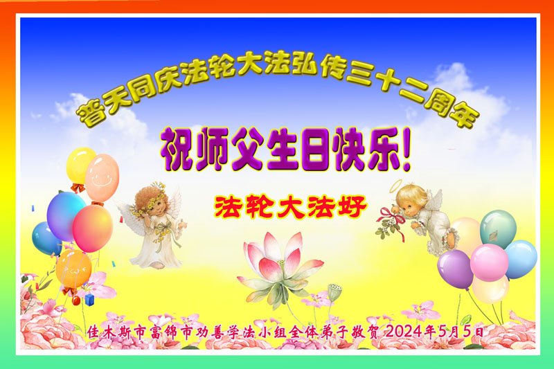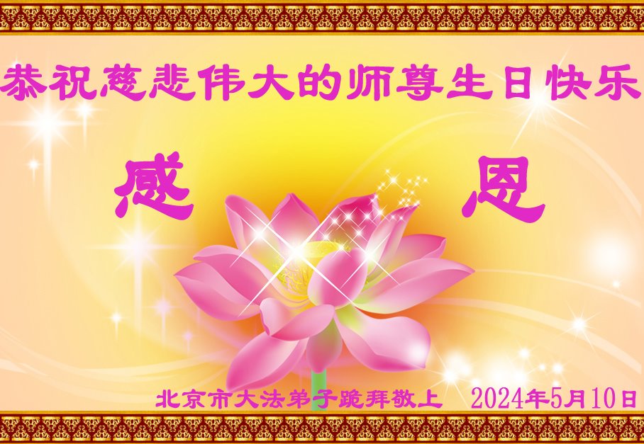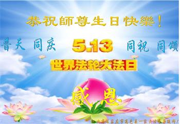 在普天同庆的日子里,我怀着虔诚的心感恩师父,这是无法用人类语言来表达的心境。恭祝师父生日快乐!祝贺大法洪传三十二周年!