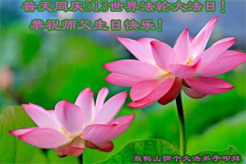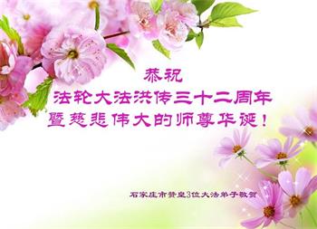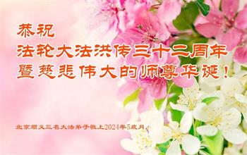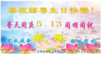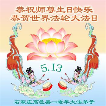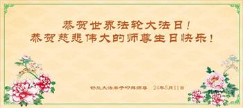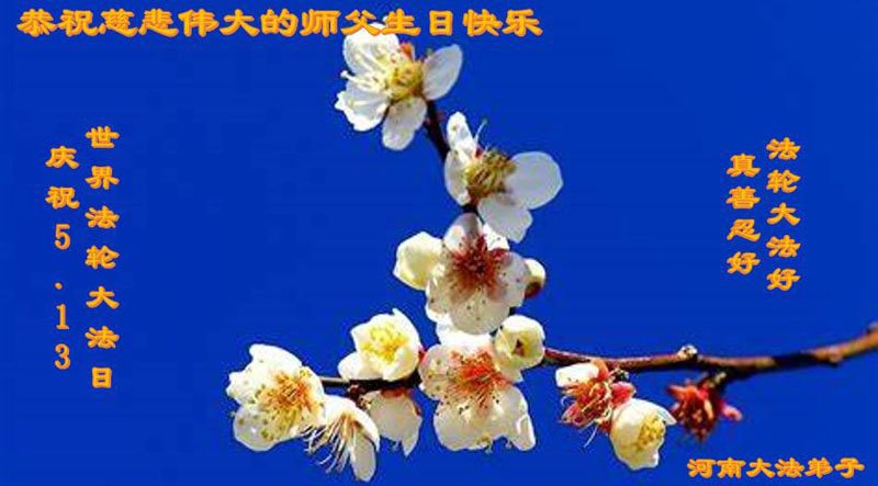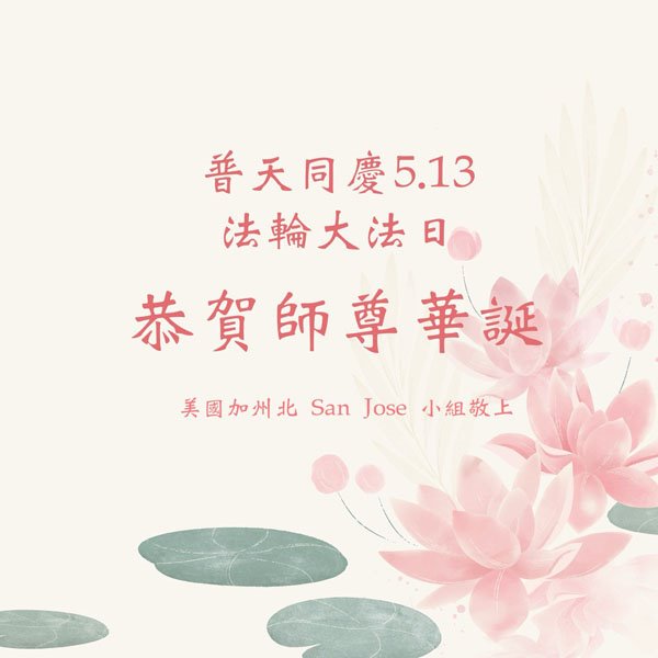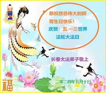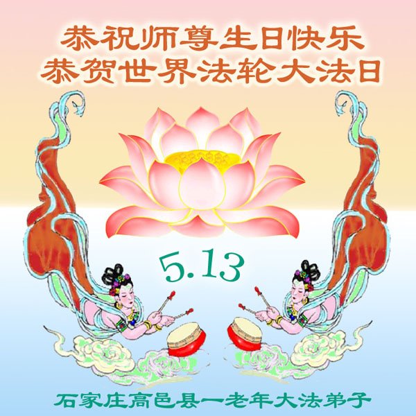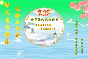 今年的五∙一三是第二十五届世界法轮大法日暨师尊华诞!弟子衷心恭祝师尊生日快乐!普天同祝同颂世界法轮大法日!感恩师尊慈悲普度!感恩师尊传法三十二周年,您为弟子及穹宇众生得救呕心沥血的操劳!弟子们唯有多学法修好自己,做好三件事,不辜负师尊的慈悲救度!
