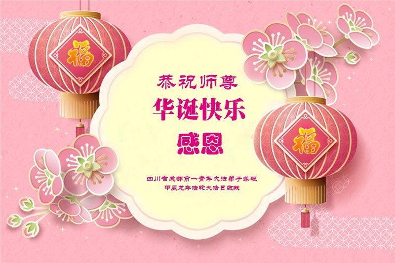 我奶奶爷爷都修炼法轮功。我从小目睹了大法弟子的高尚品德,处处为别人着想的高风亮节。同时也看到了邪党对大法弟子的无端迫害。那时邪党人员经常到家里骚扰,绑架我奶奶,我吓得抱着奶奶的腿大哭,幼小的心灵受到了极大的伤害,从此我恨透了某某党。所以我从上学开始,坚决不申请加入邪党的党、团组织。我虽然还没有走入修炼,但只要遇到困难,我就诚念“法轮大法好,真善忍好”九字真言,就能得到师父的保护,困难很快就迎刃而解。感恩师父的慈悲救度!恭祝师父生日快乐!