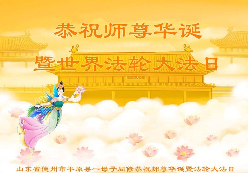 山东省诸城市一青年大法弟子写道:“慈悲伟大的师父好!我九岁时就跟随着妈妈学大法。在邪恶疯狂时期,我和妈妈一起配合发资料、写标语、挂横幅。在妈妈多次被非法关押期间,我没有动摇信念。我非常珍惜师父赐予的‘正法时期大法弟子’的神圣称号。我生逢在师父传宇宙大法时期,万分感谢师父的伟大赐予,这是我生生世世的期盼,这是我来到人世的夙愿。”