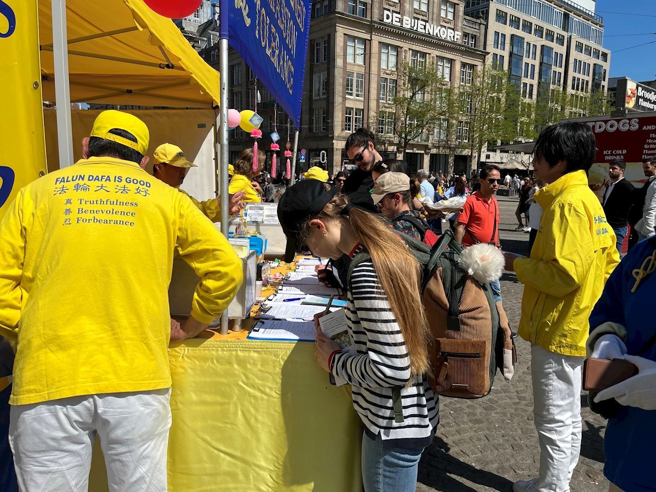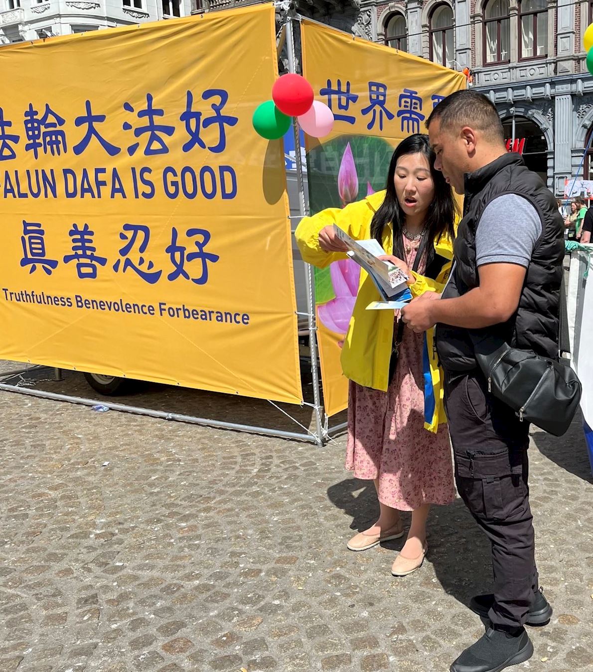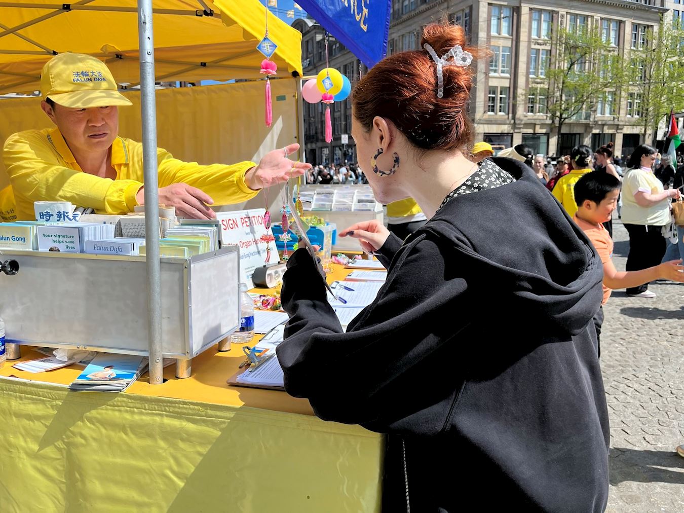 卡梅拉(Camela)女士表示:“我很喜欢中国文化。我平时也喜欢佛家的打坐修炼,所以当我看到你们的功法,立即吸引了我,我很想买一本法轮功的书,了解一下这个功法。真善忍,这总是好的。荷兰需要这种普遍规范和价值观。”