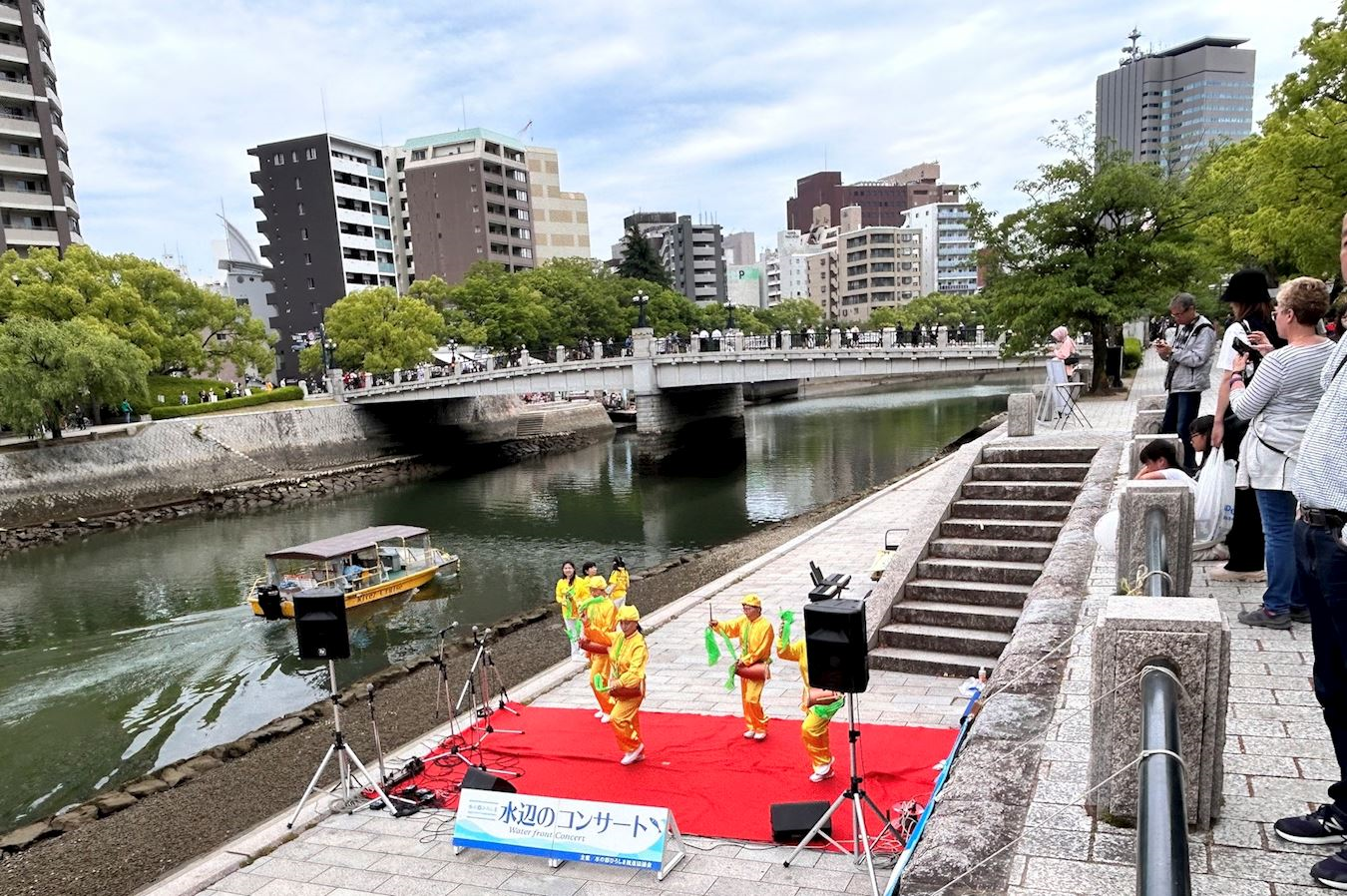 法轮功学员应邀演出节目丰富:演示法轮功五套功法、腰鼓舞、配乐书法展示、钢琴演奏“得度”和故事朗诵“了不起的米饭”。学员的演出吸引了不少当地市民和游客,他们纷纷拍照录像。有路人表示感受到演出从头至尾有一种祥和慈悲的气氛。也有的观众表示有种说不出的感动,甚至有要流泪的感觉。