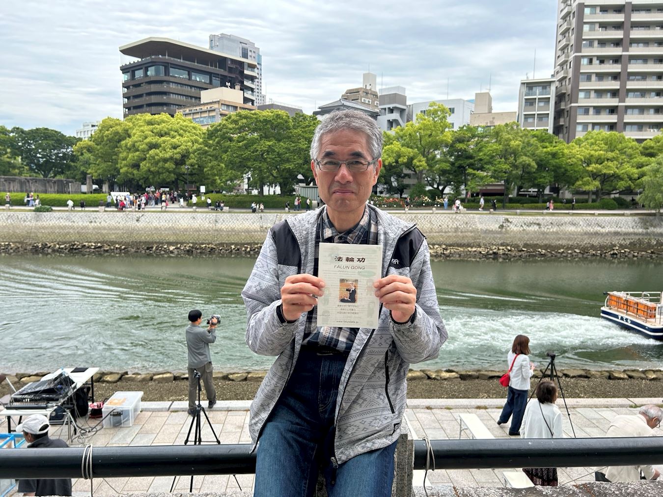 二十年前就知道真相的酒井先生,长期以来一直支持法轮功,他曾观看过“真善忍美展”,也曾加入过法轮功学员的反迫害游行行列。当天,酒井先生正巧路过这里,他从头至尾观看了法轮功学员的演出。过程中他还告诉旁边的人,看演出不能说话,一定要集中注意力认真观看,临行前还再次向法轮功学员询问了“法轮大法好、真善忍好”的意思和读法。
