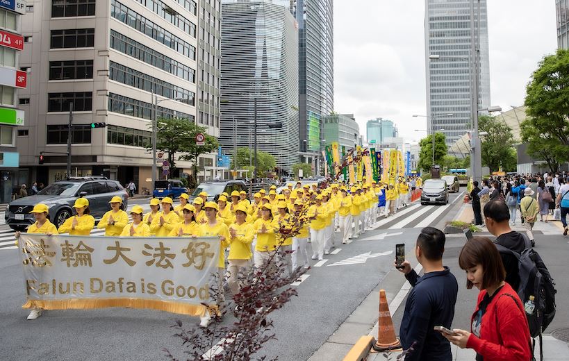 图30:二零二四年五月十二日,日本法轮功学员在东京中心繁华街区举办游行活动,庆祝法轮大法弘传世界三十二周年。 |