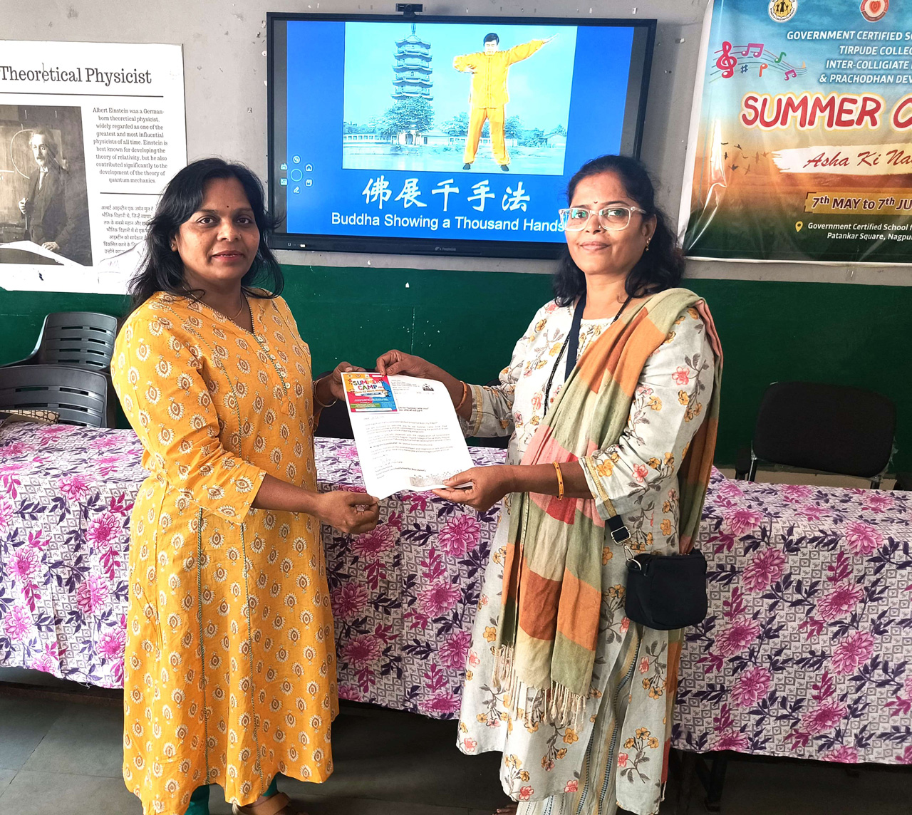 那格浦尔儿童福利部的副协调员萨德娜‧哈特瓦尔(Sadhna Hatwar)为法轮功学员颁发感谢信。