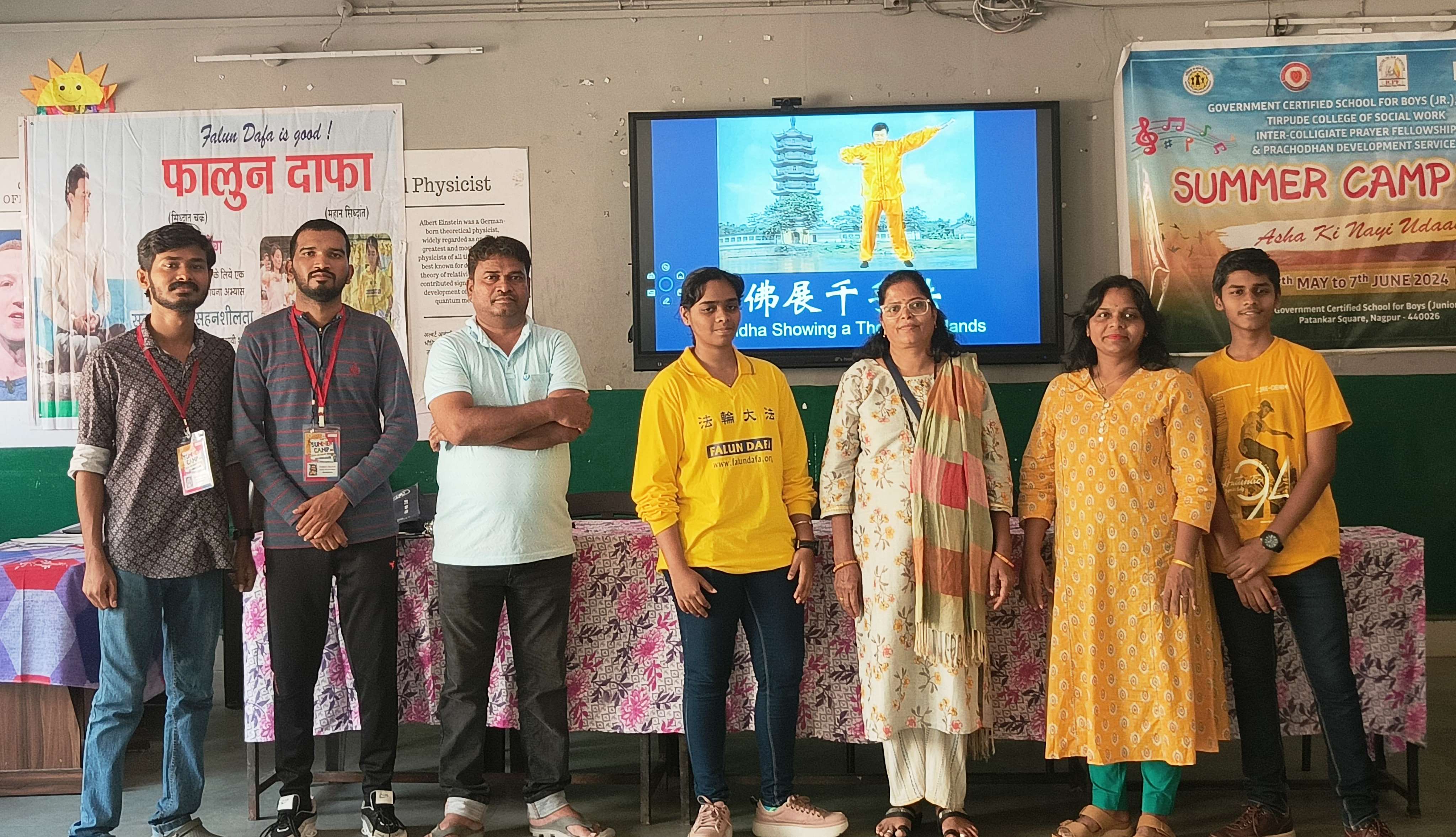 那格浦尔男生寄宿学校是一所政府资助机构,旨在为贫困儿童和孤儿提供经济、住宿和教育援助。此次介绍会是该校夏令营的活动内容之一。在一个小时的活动中,四十多位学生了解到什么是法轮功,并现场学炼功法动作。