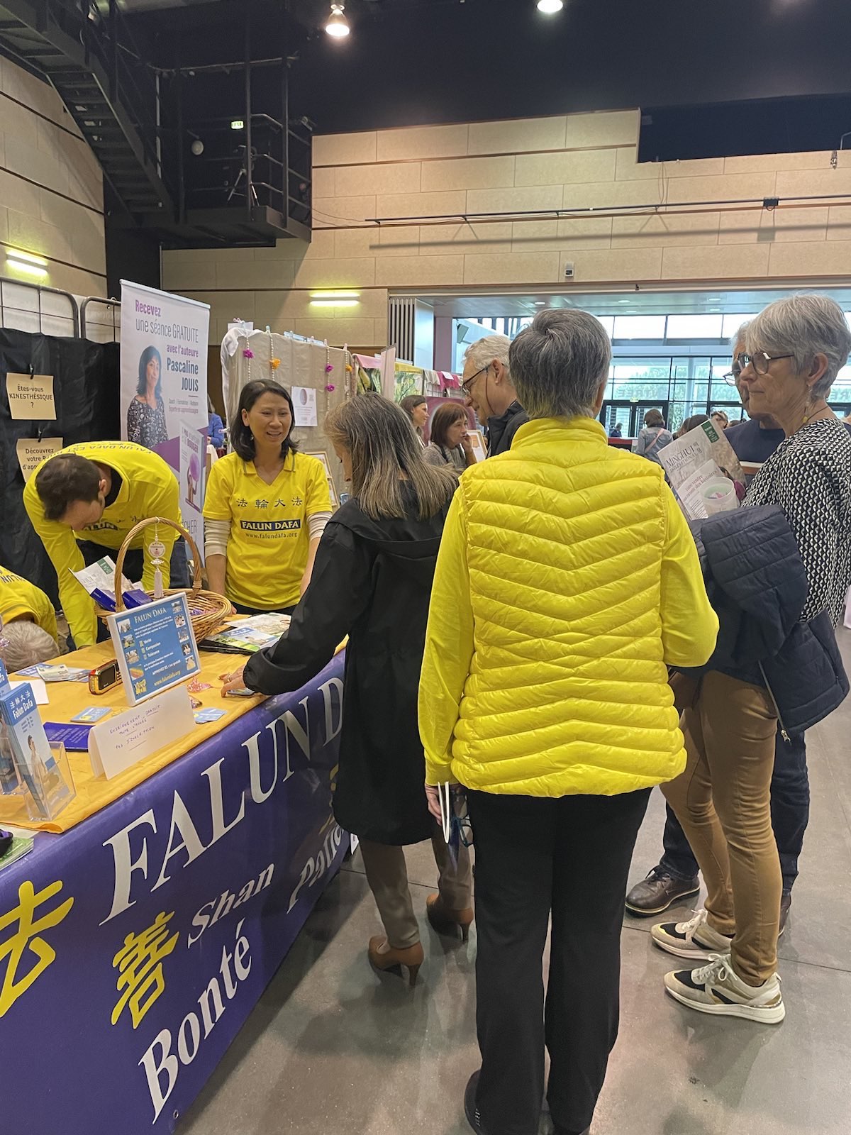 健康展览会迎合了法国民众的强烈需求——追求心灵与身体的双重健康。在为期两天的活动中,众多参观者前来寻求资讯。虽然其中一些人了解其它气功修炼方式,但对法轮功却所知甚少,他们很快就被这个修炼功法所吸引。有些人购买了法轮功著作《转法轮》和《法轮大法大圆满法》。