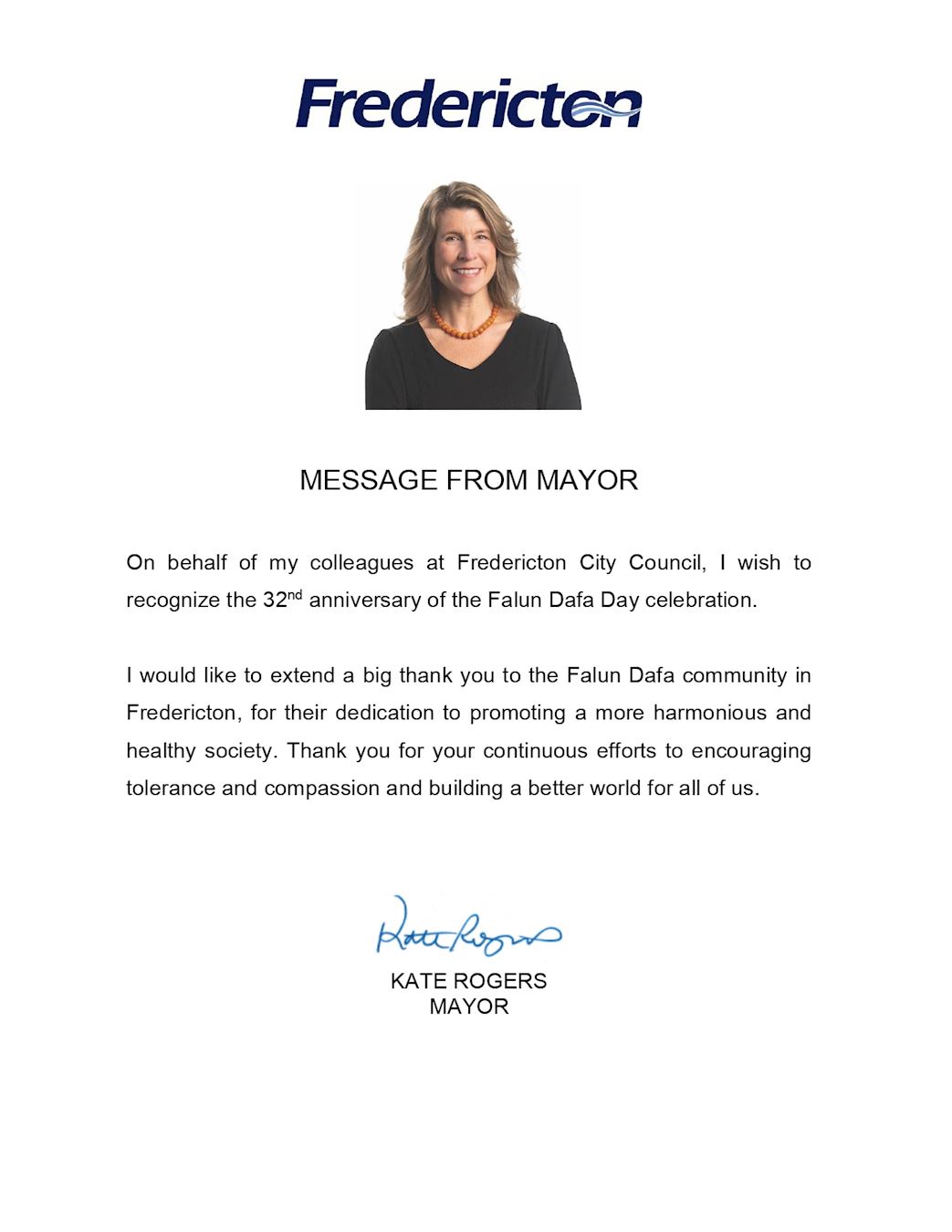 图10:弗雷德里克顿市市长凯特·罗杰斯(Kate Rogers)的贺信
