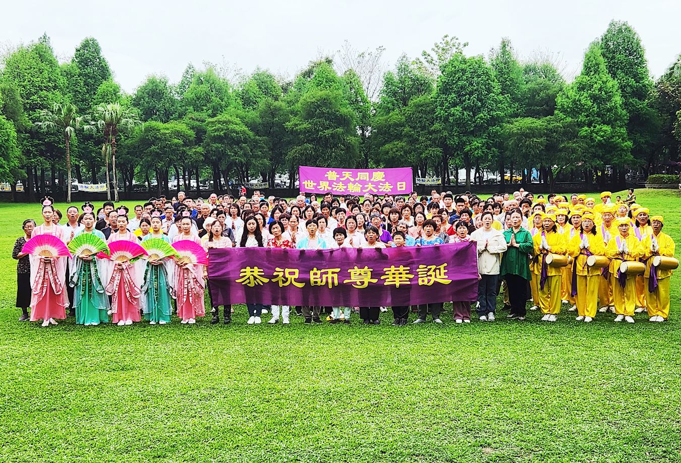 ![]() 图1:二零二四年五月五日,来自台湾云林及嘉义县的部分法轮功学员在古坑绿色隧道,恭祝师父生日快乐! |