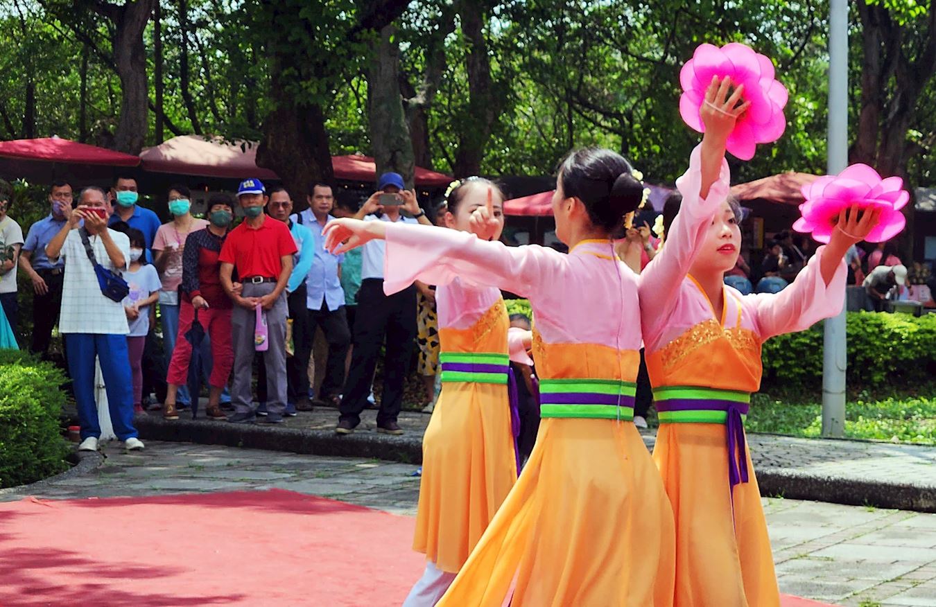 活动中安排了祥和的五套功法展示、欢快的腰鼓队表演、优美的中国古典舞蹈表演、动听的小号及萨克斯风独奏,来庆祝这伟大的日子。在绿色隧道,法轮功学员分发真相资料给往来的游客,希望把法轮大法的美好与世人分享,并一起大合照恭祝李洪志师父生日快乐!