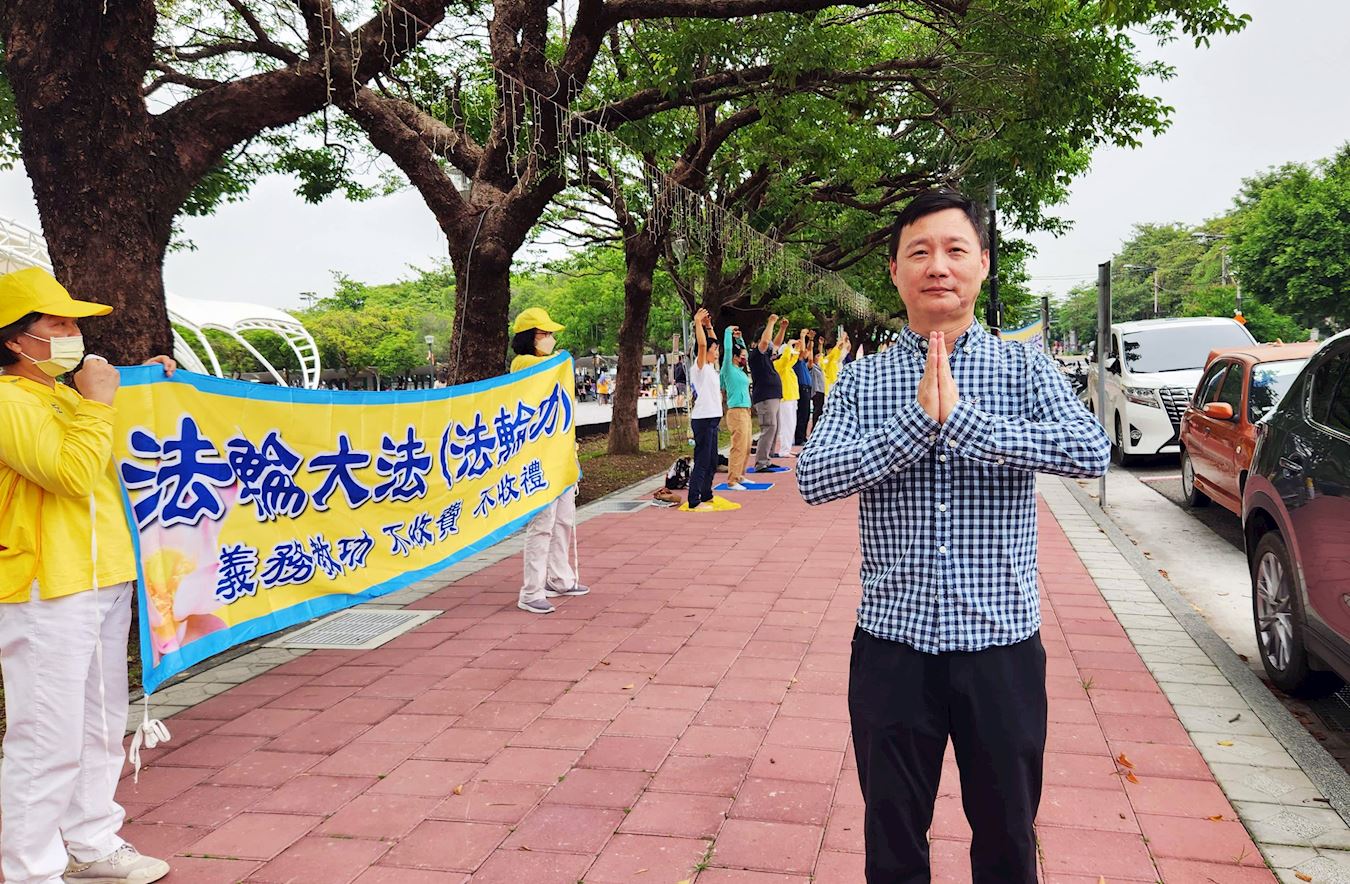 来自彰化侨义的张先生与家人看见法轮大法学员的表演,充满兴趣与好奇,询问着要怎么炼功?当得知中共打压法轮功,他认为这很不应该。他表示,感谢法轮功学员让他知道了许多中共干的坏事,了解许多真相。