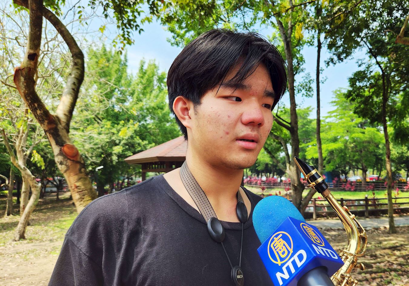 林敬庭小时候随父母在国外生活,近年回台湾进入茑松艺术高中学习音乐。他说:“这个学校是个修炼的环境,因为修炼大法,读法时对法理的理解,大家都懂得遇到矛盾向内找自己,是个很棒的环境。”