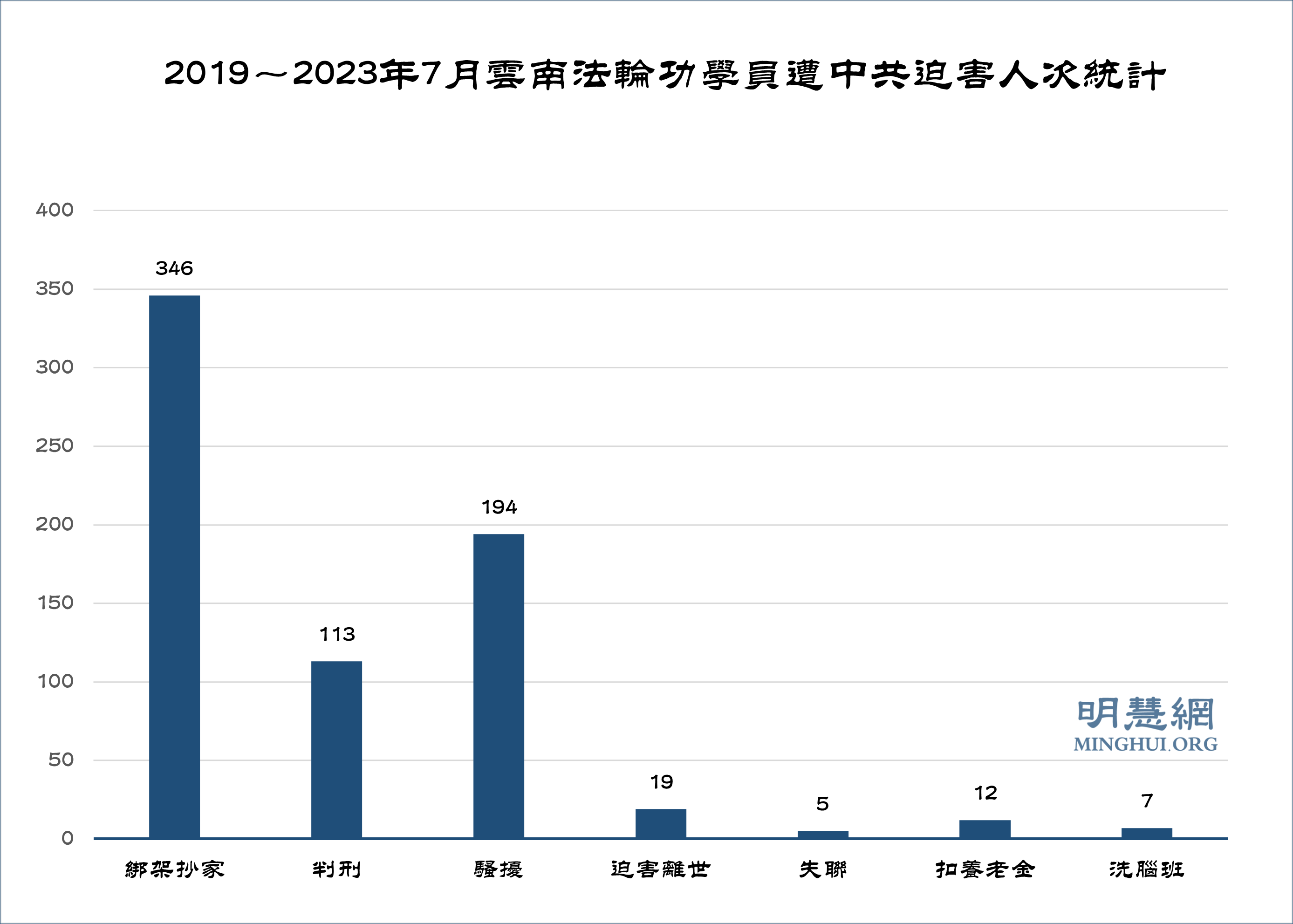 图:2019~2023年7月云南法轮功学员遭中共迫害人次统计
