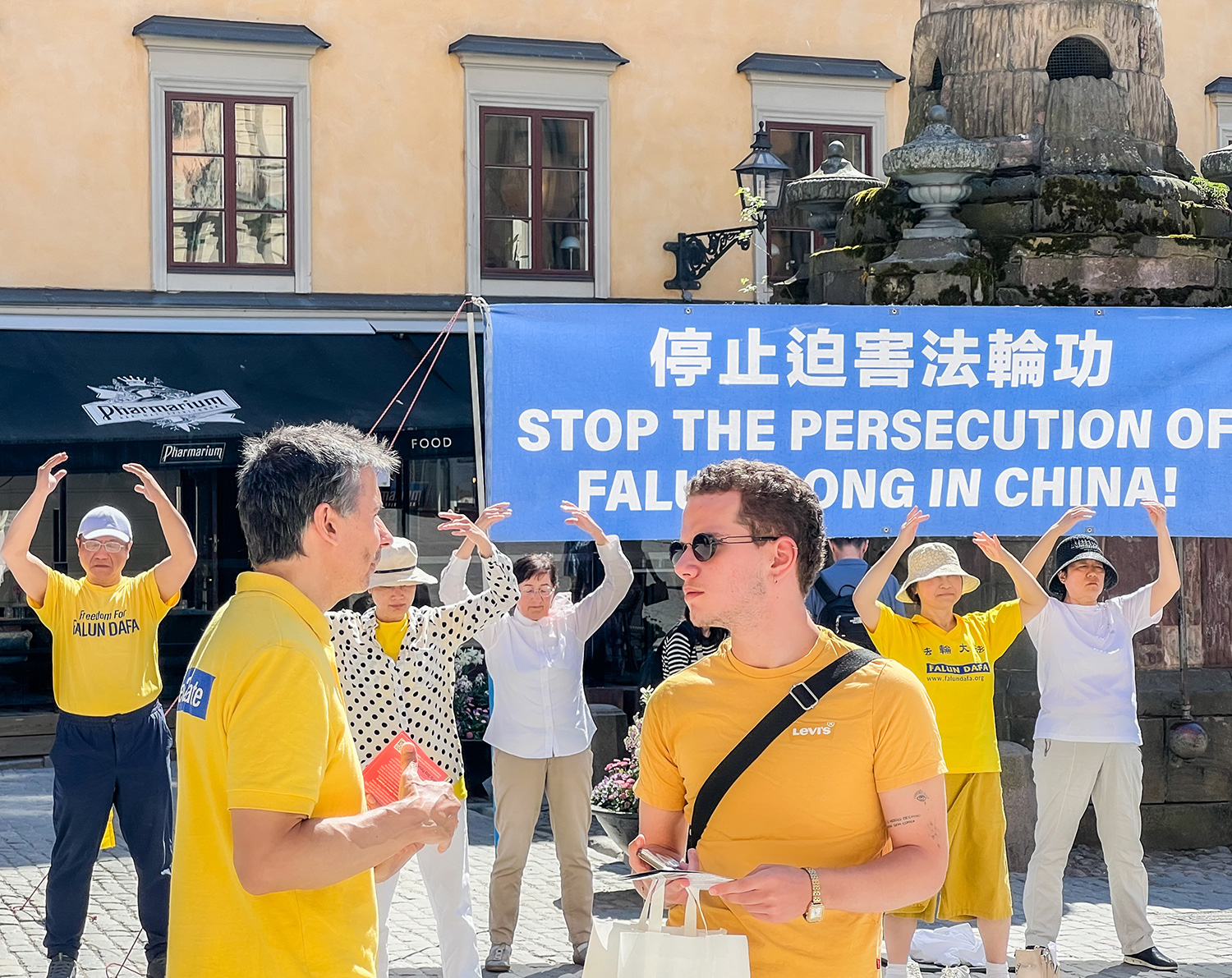 还有一对大陆来瑞典工作的小夫妻也来听学员讲真相,那位女士说:“过去我对法轮功的了解都是中共媒体宣传的。来到海外后,多次遇到过法轮功象你们这样公开讲真相的活动,震撼人心。而且看到还有很多外国人都在炼法轮功,这和中共宣传的完全不符啊!”