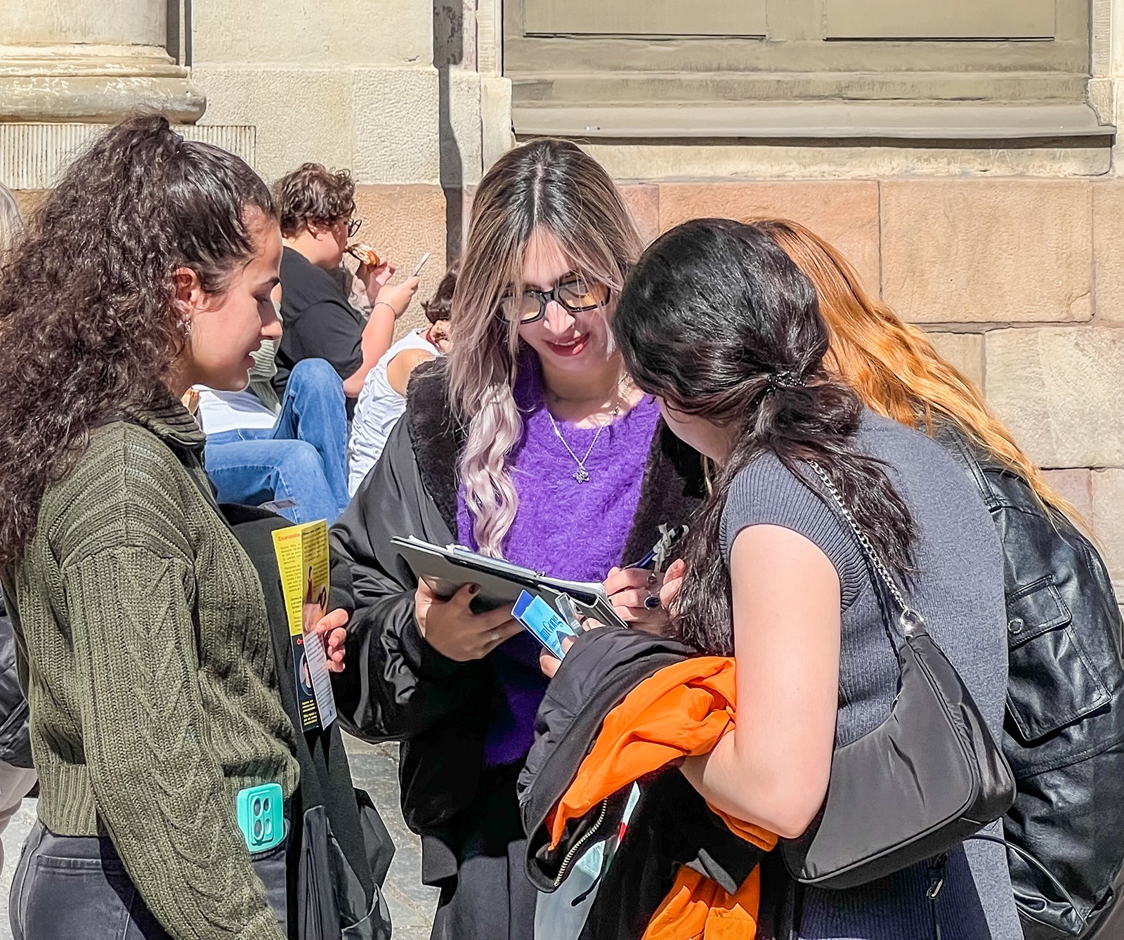 ![]() 图2:许多游客接到学员派送的真相传单后,现场认真阅读起来。 |