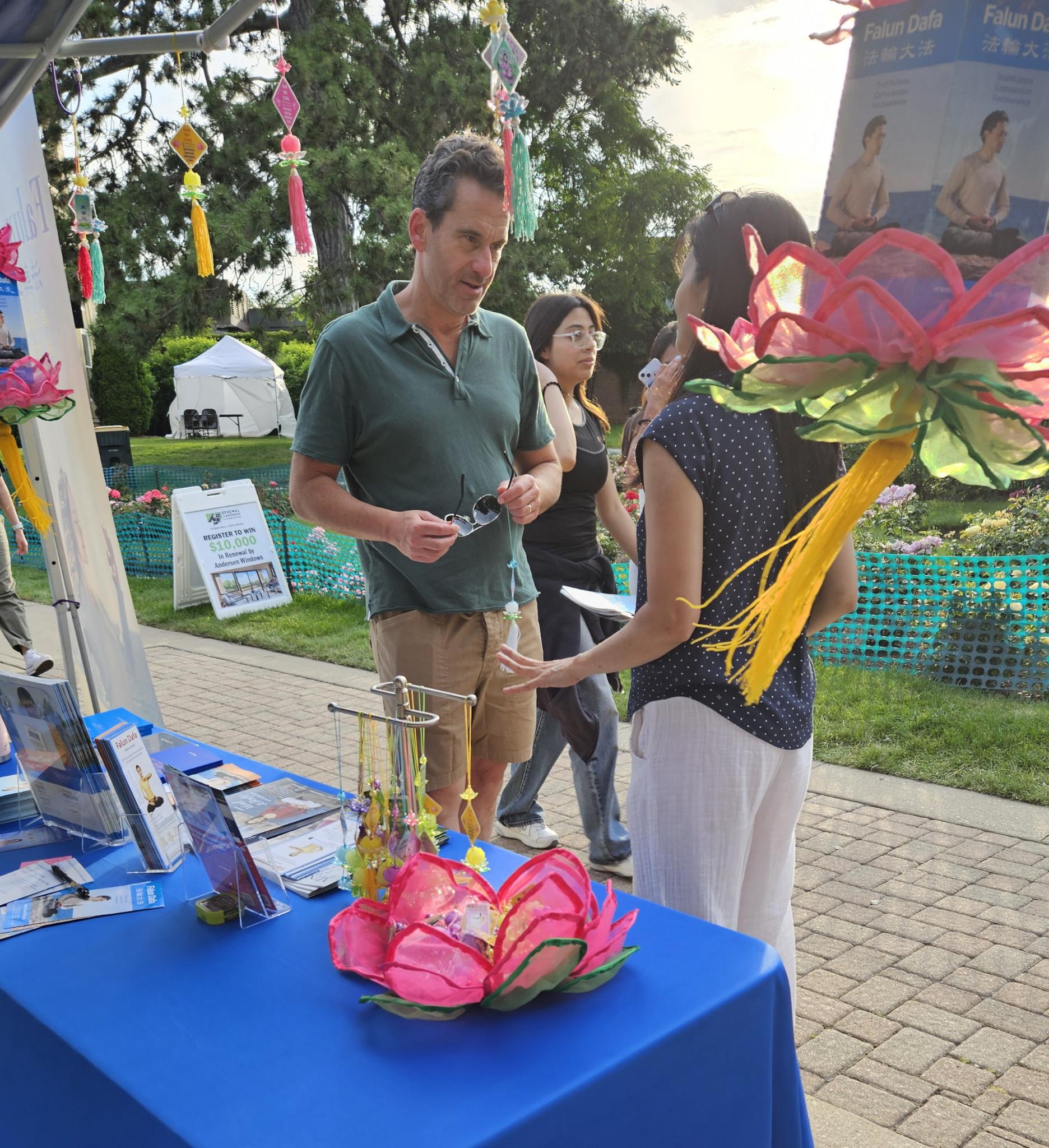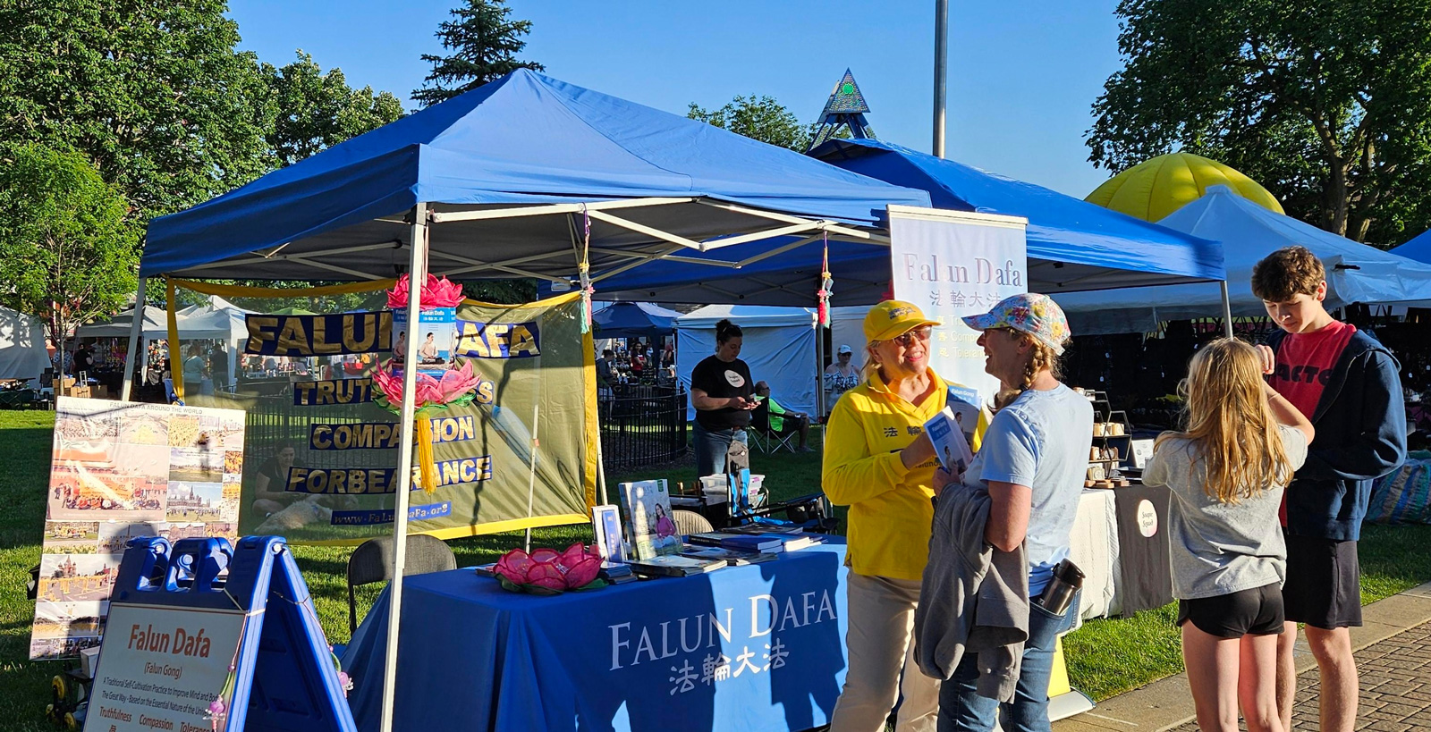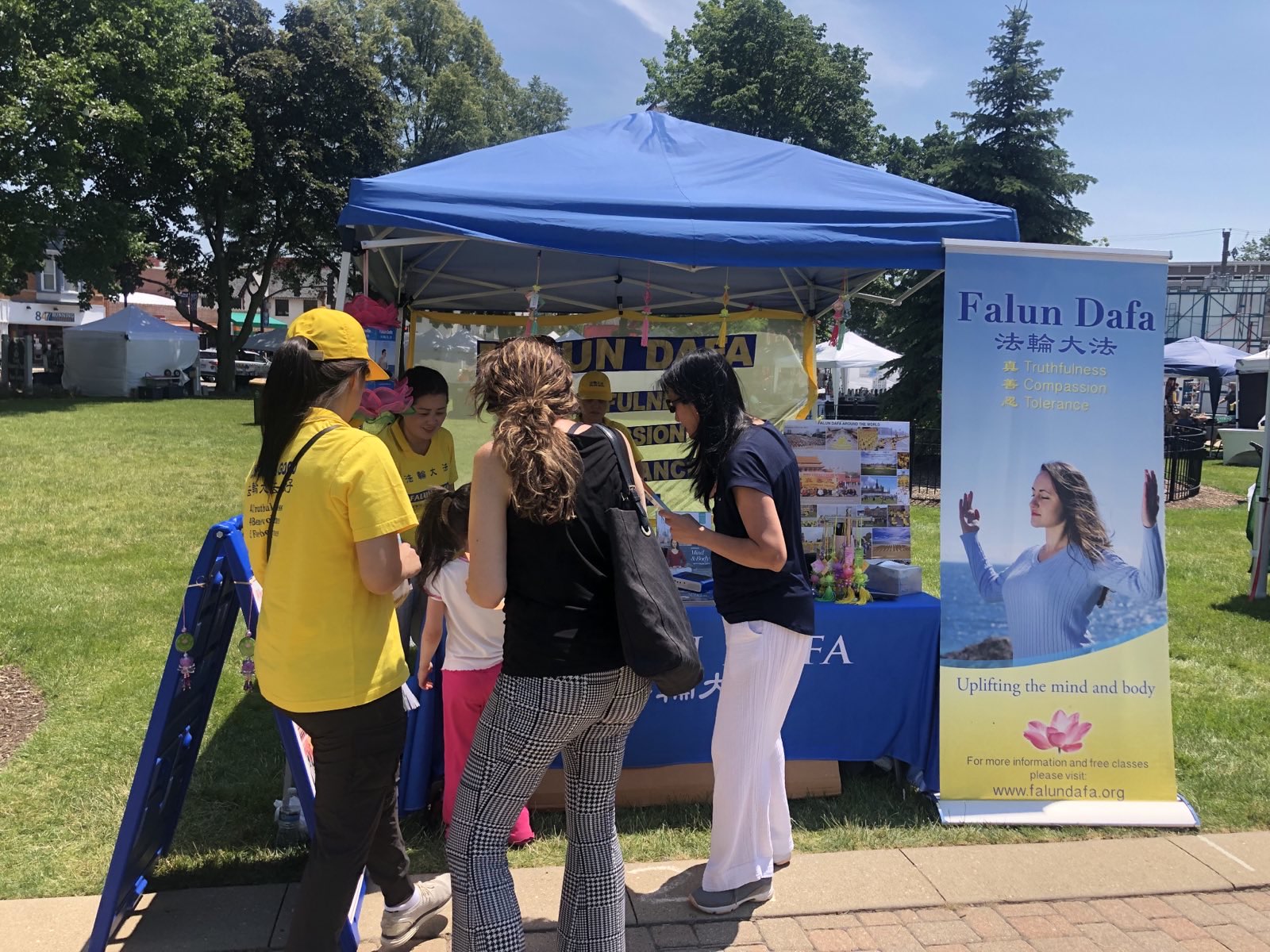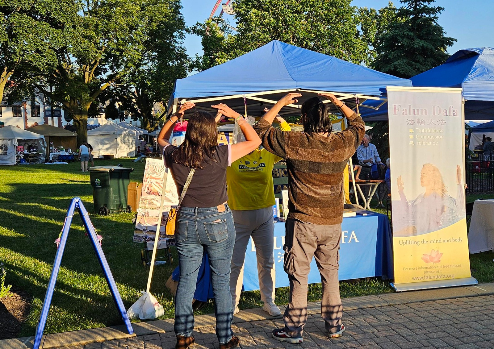 【明慧网二零二四年六月二十二日】二零二四年六月十三日到十六日,美国芝加哥法轮功学员再次参加了芝加哥北郊的小城利伯蒂维尔(Libertyville)举办的一年一度的城市节庆(Libertyville Days Festival)。很多当地民众了解了法轮大法,并在现场学炼法轮功。相当多的人很高兴知道法轮功学员在附近的公园有一个炼功点,表示他们会在周日去炼功点学习功法。