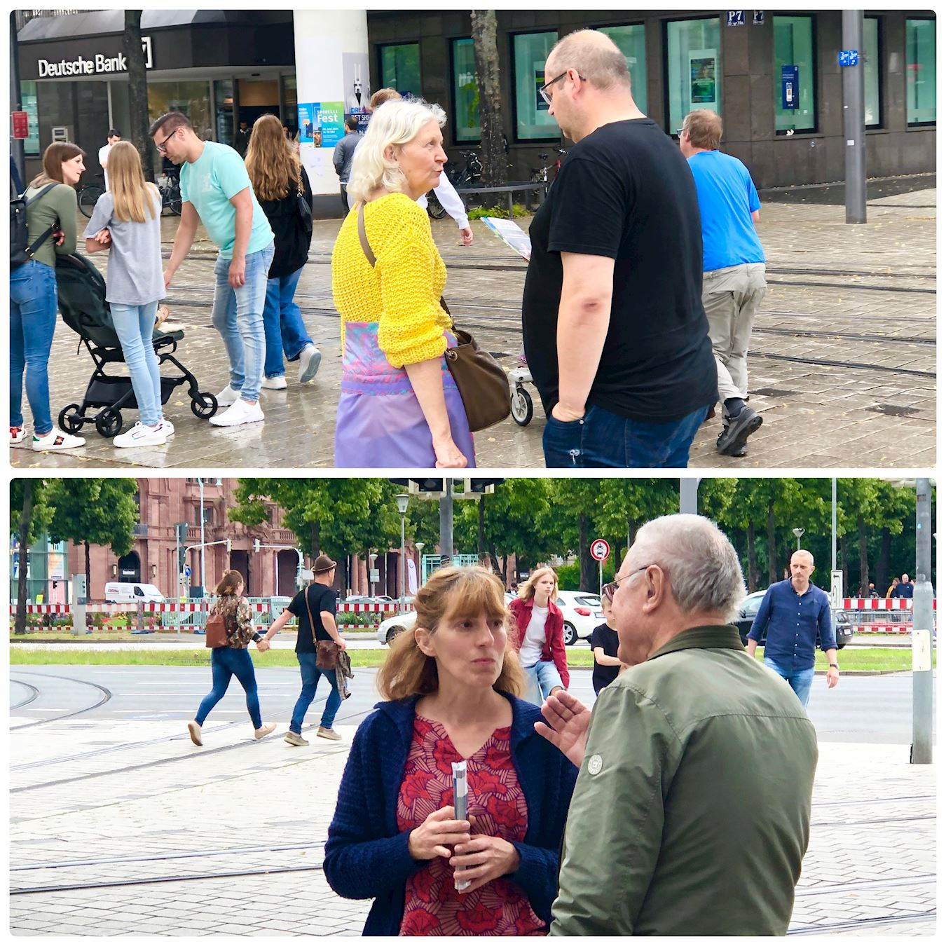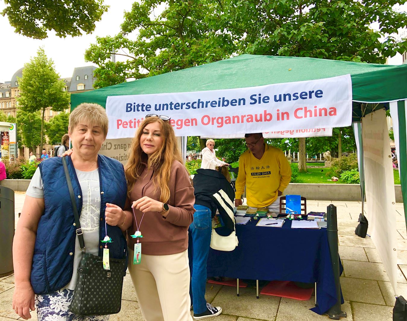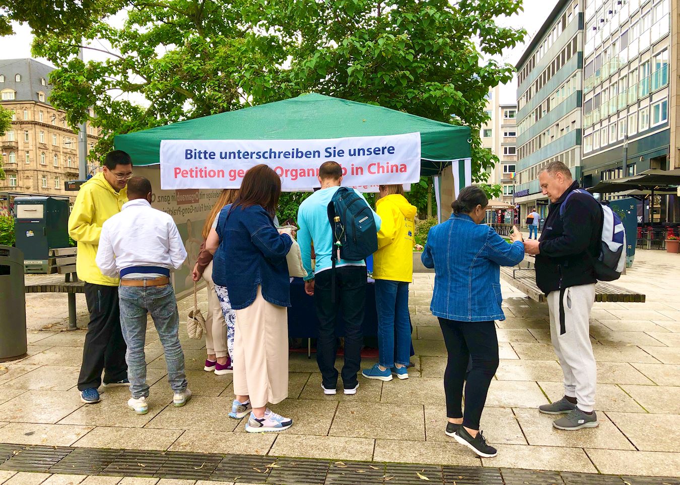 两位家住曼海姆的高中生仔细阅读学员递过来的传单后在征签表上签名。其中的一位男生说,“今天得知了这个信息(中共迫害法轮功)对我来说很重要,以前我也听说过对新疆维吾尔族人的迫害。我觉得,在这里,在西方世界,表明立场非常重要。”