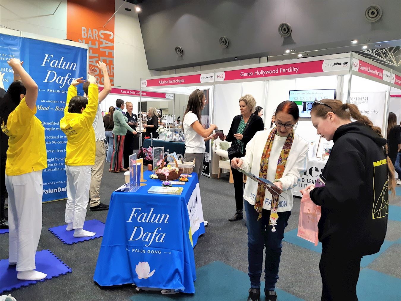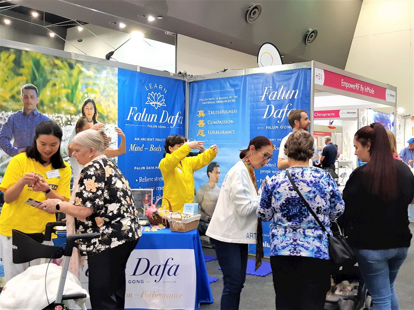 ![]() 图1:西澳法轮功学员在“每位女人”博览会上展示优美祥和的五套功法。 |