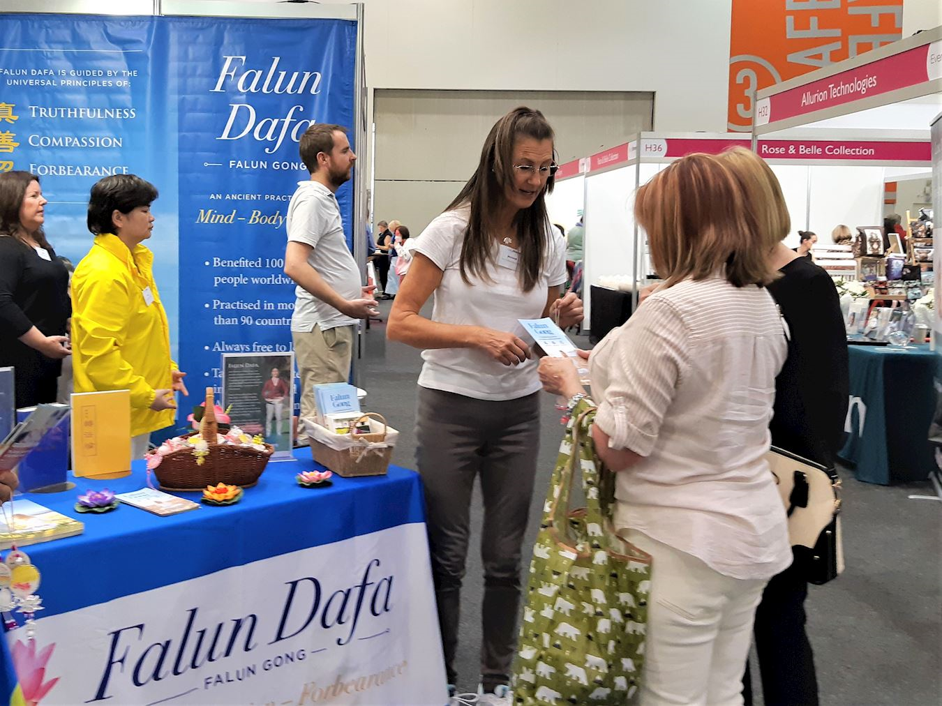 三位女士都不约而同地在法轮大法展位上认知和感受到超乎寻常的美好与惊喜。