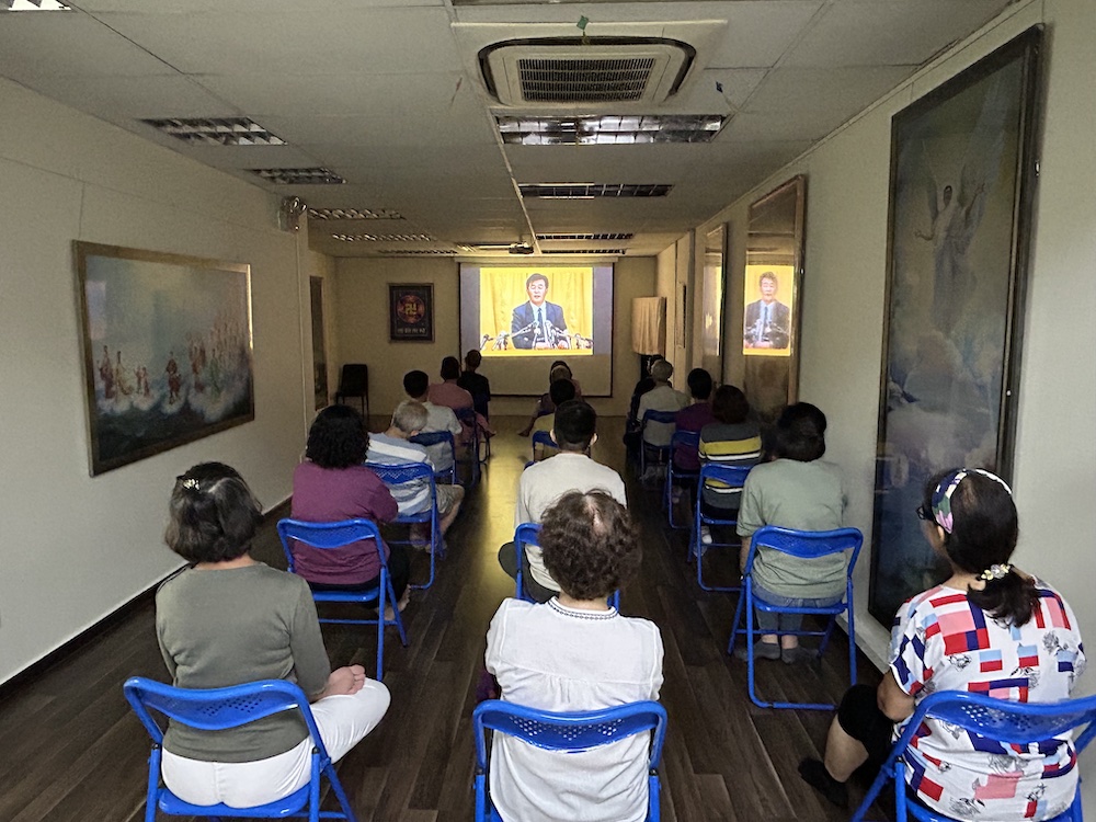 ![]() 图1:二零二四年六月八日至六月十六日,新加坡法轮佛学会举办九天班,新学员们在观看法轮大法创始人李洪志先生的讲法录像。 |