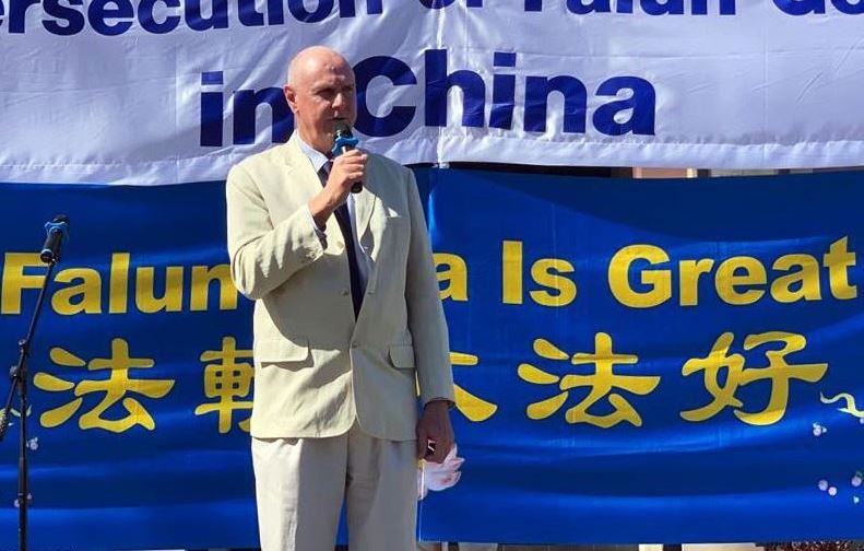 ![]() 图4:澳大利亚法轮大法学会发言人约翰·戴勒(John Deller)先生表示,对中共活摘器官保持沉默等同于默许。 |