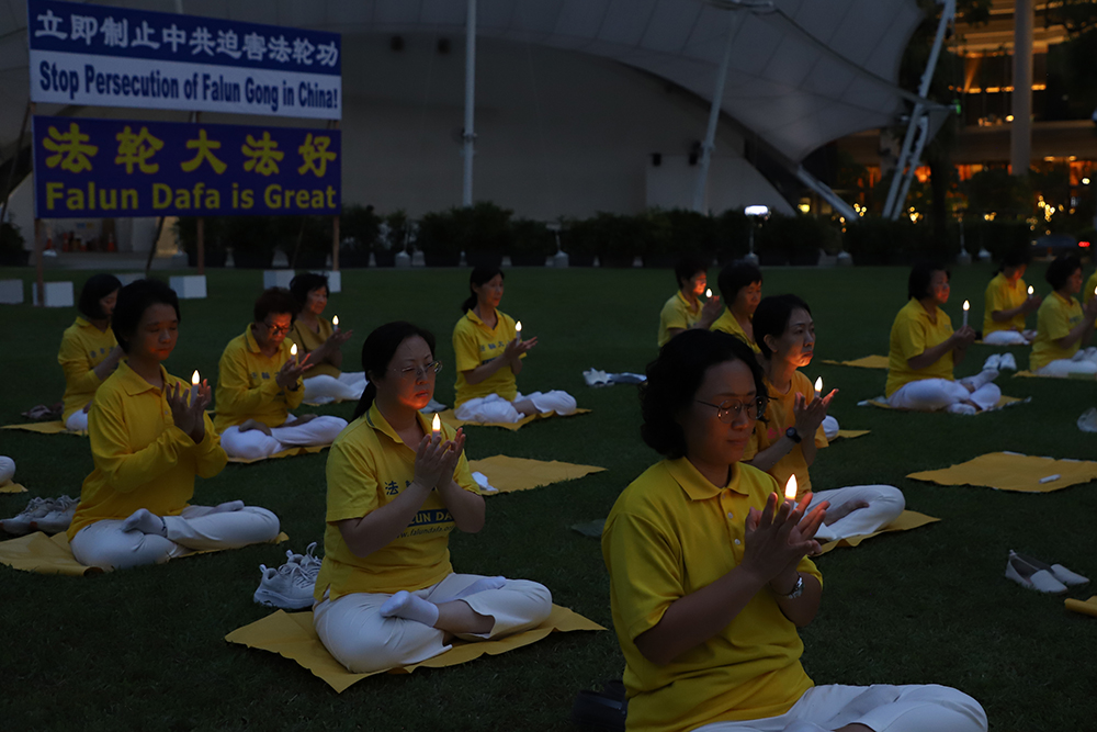 ![]() 图9~11:二零二四年七月九日晚,新加坡部分法轮功学员在芳林公园举办烛光悼念活动,缅怀二十五年来被中共迫害致死的法轮功学员。 |