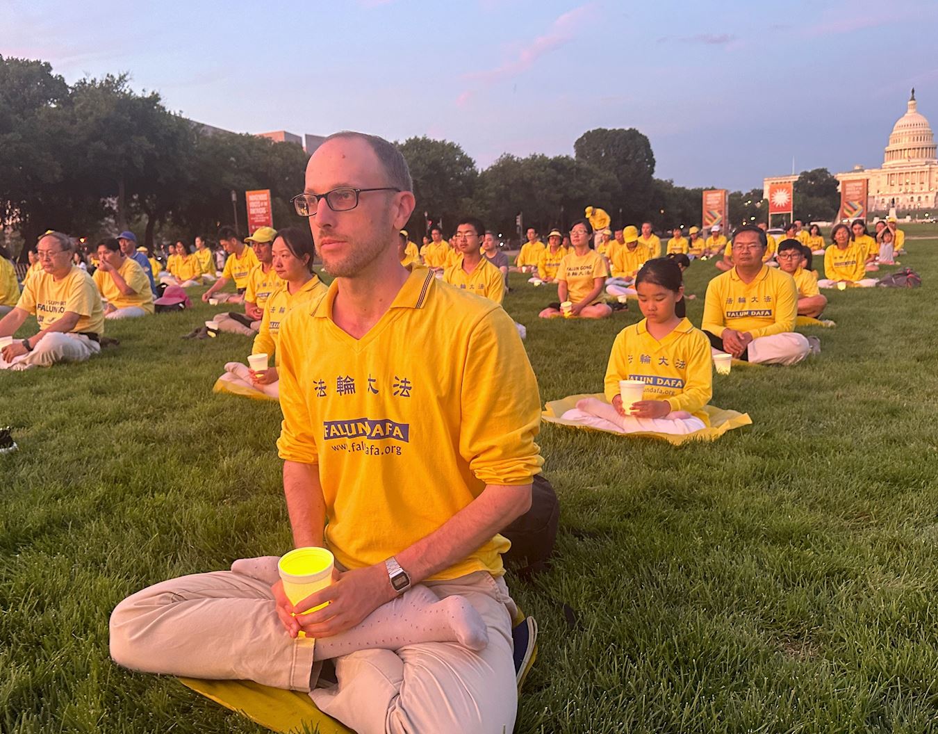来自比利时的伊夫(Yves)从事国防网络安全工作,第一次听说法轮大法,看到法轮功学员烛光夜悼的场面,他很感动。“我们通常看到的街头示威抗议,人们都大喊大叫,制造很多噪音,今天看到这么多人静静地坐在这里,令人感到震撼。”