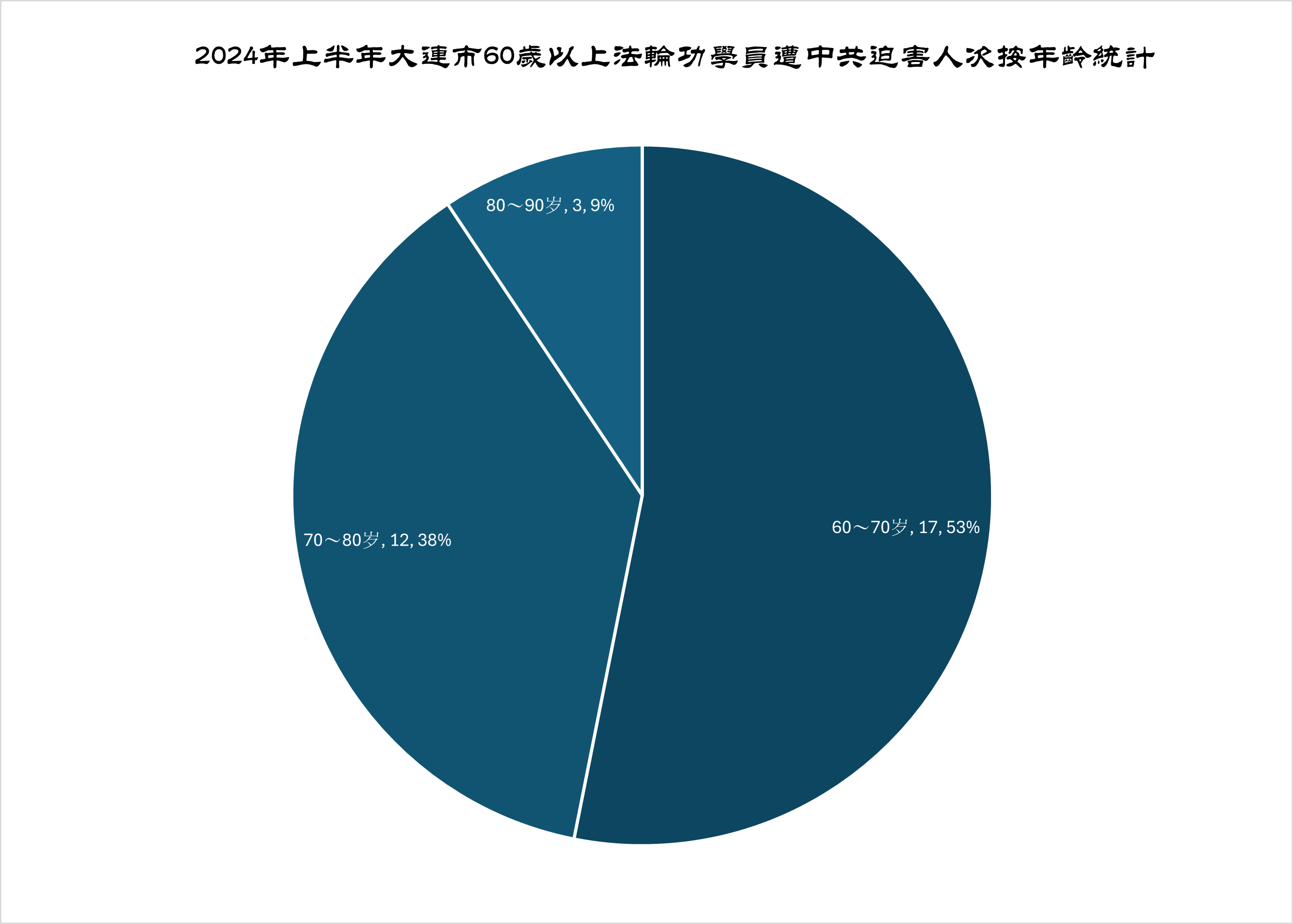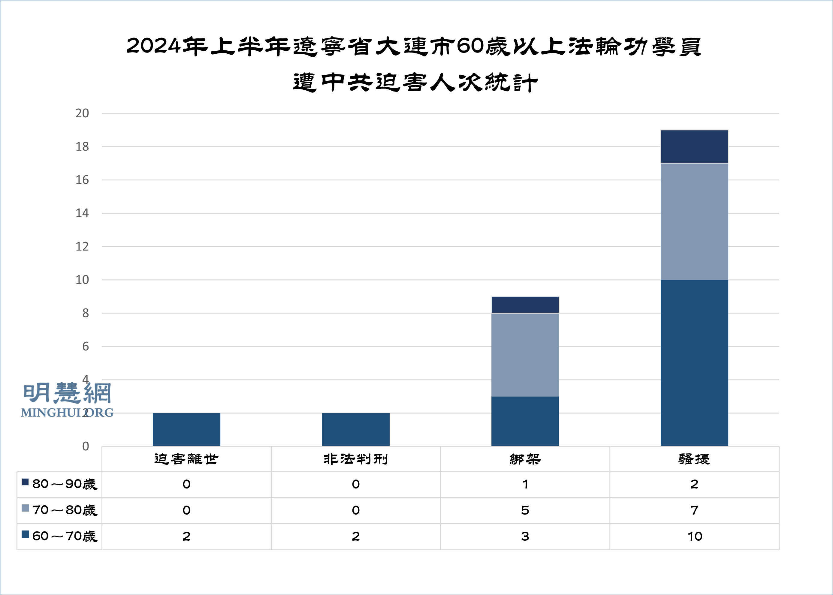 ![]() 图5:2024年上半年大连市60岁以上法轮功学员遭中共迫害人次按年龄统计 |