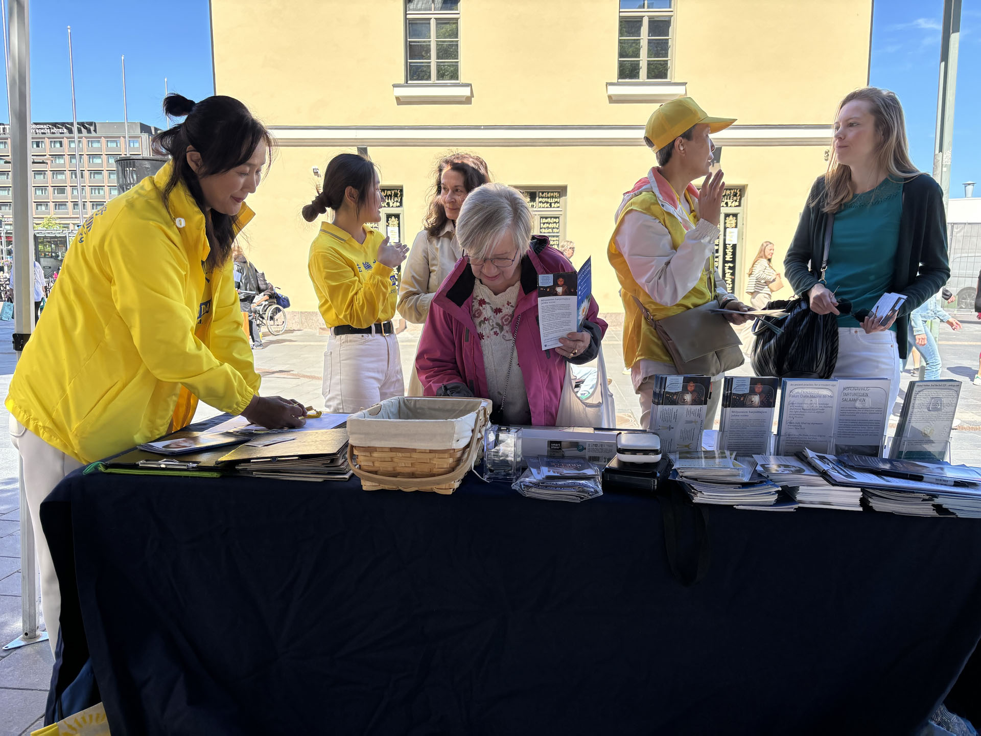目前住在赫尔辛基的来自奈及利亚的一位女士,听到中共如何迫害法轮功的真相后,她说:“我一般不会随便签字,这个我一定要签字。怎么可以随便剥夺他人最基本的权利呢?”