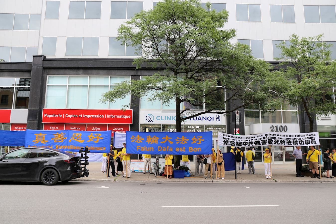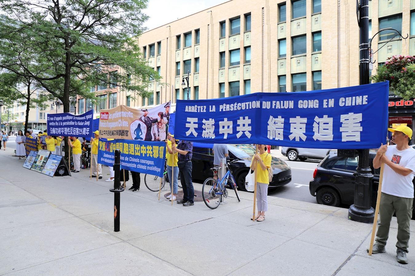 ![]() 图1~3:7月16日,蒙特利尔部分法轮功学员在中领馆前集会。 |