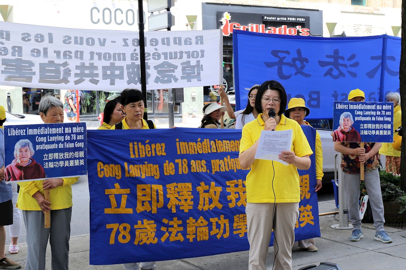 在集会上,加拿大公民丛新苗女士在集会上向社会各界呼吁营救被中共警察绑架、非法关押的母亲丛兰英。