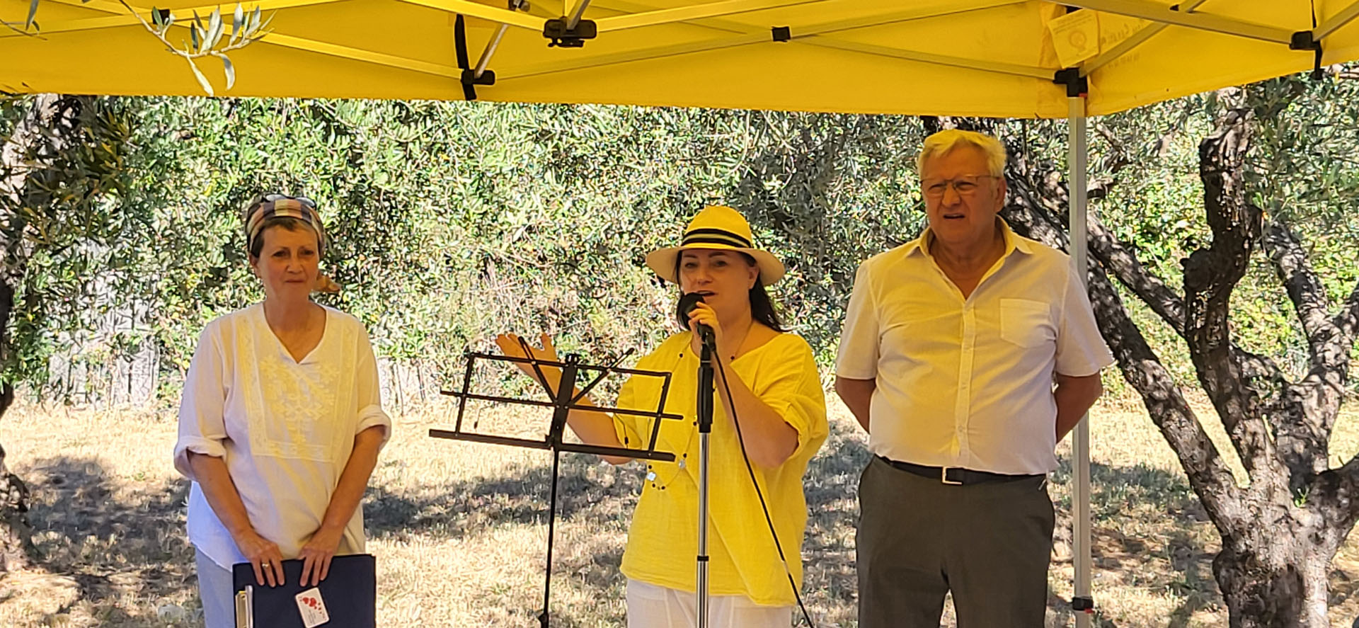 ![]() 图1:七月十三日傍晚,菲加尼尔天气晴朗,微风和煦,在教堂外象征和平的橄榄树园中,举行了真善忍国际美展的开幕式典礼。 |