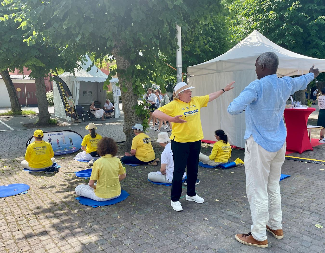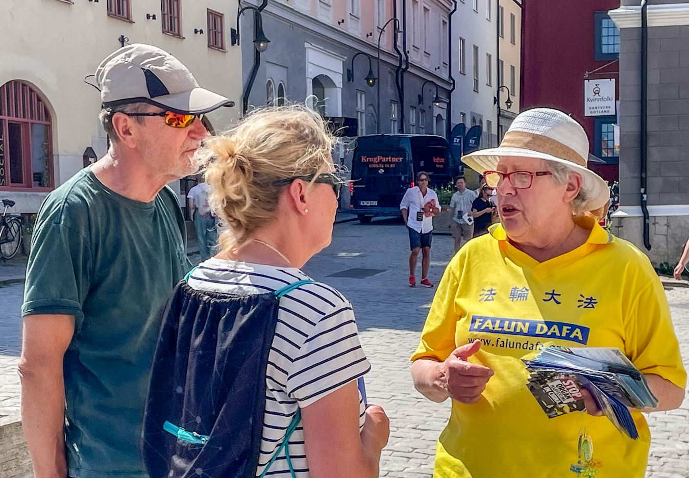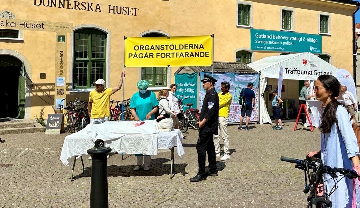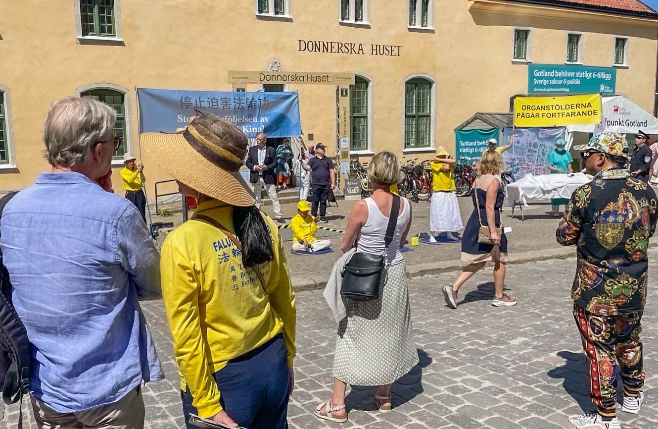 论坛周期间,法轮功学员与往年一样设立了讲真相展位,举办一系列的讲真相活动。他们每天中午都在维斯比的中心广场(Donners Plats),向民众介绍法轮功、展示功法,还通过模拟中共活摘器官场景,揭露发生在中国的迫害真相。明真相民众用行动支持反迫害。